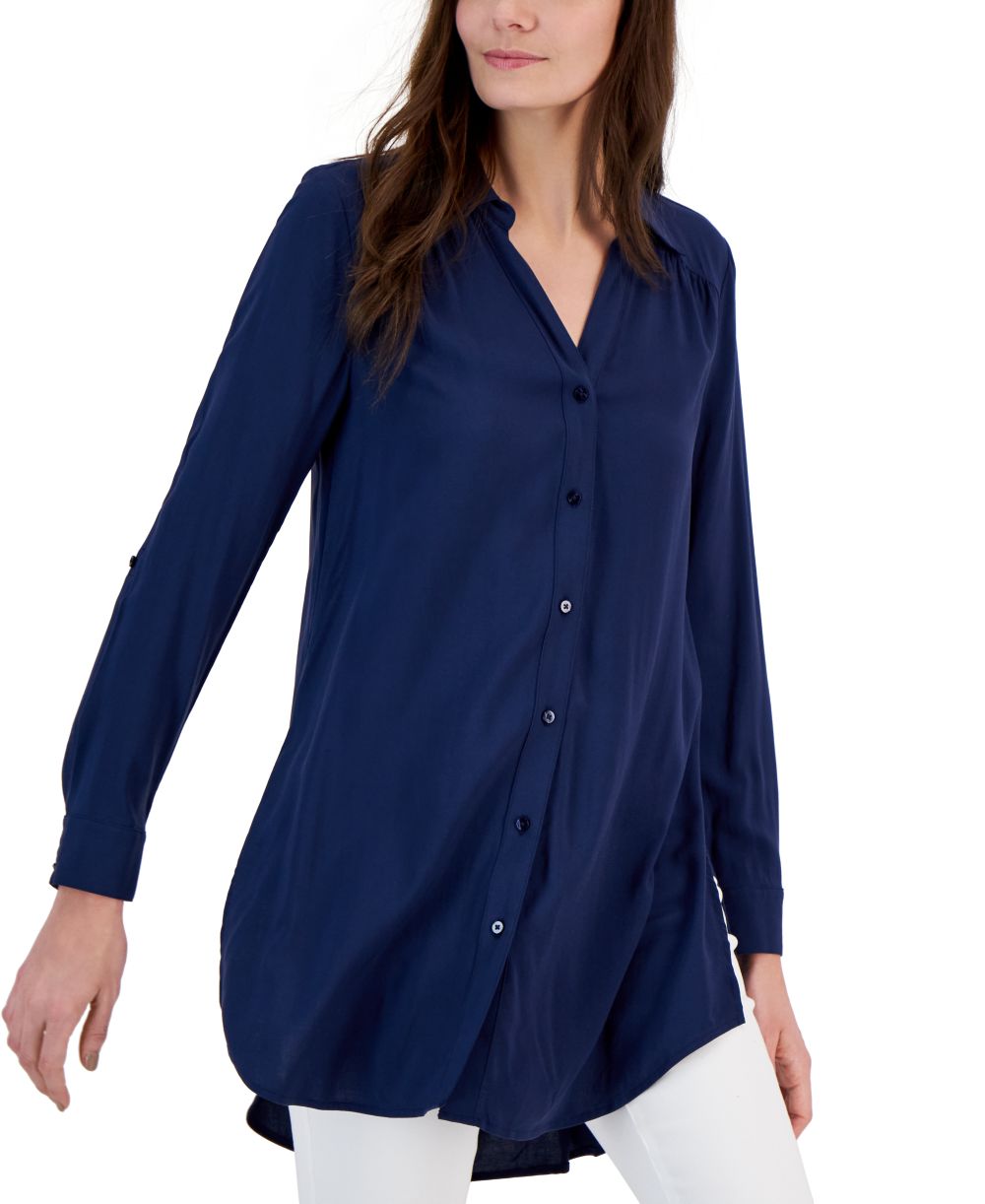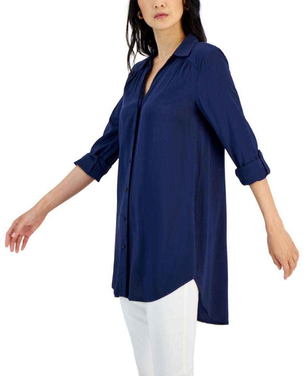 I.N.C. International Concepts Womens Roll Tab Button Down Long Blouse