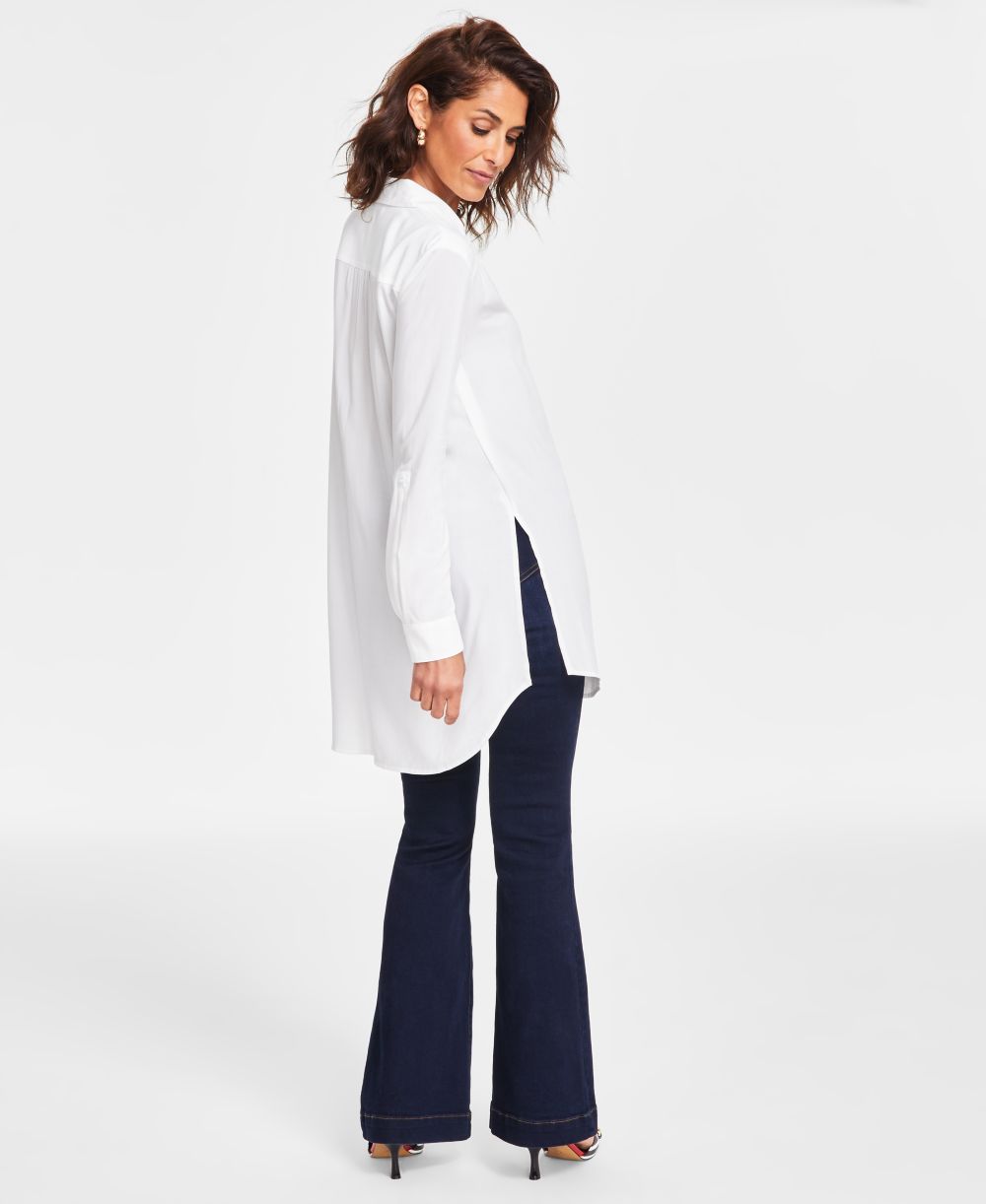 I.N.C. International Concepts Womens Roll Tab Button Down Long Blouse