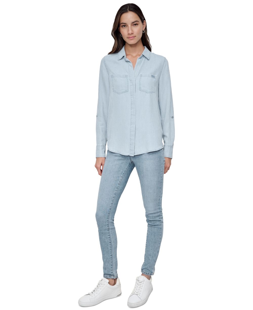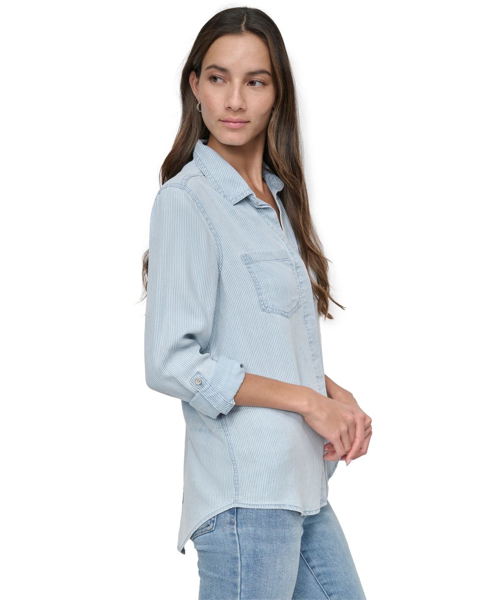 DKNY Jeans Womens Roll Tab Sleeve Button Front Shirt
