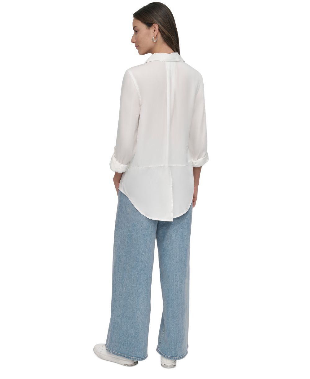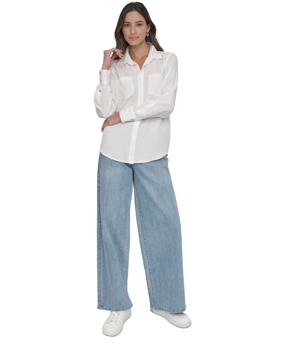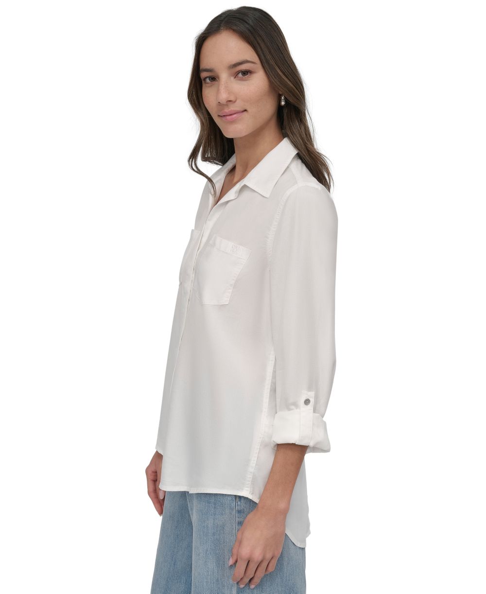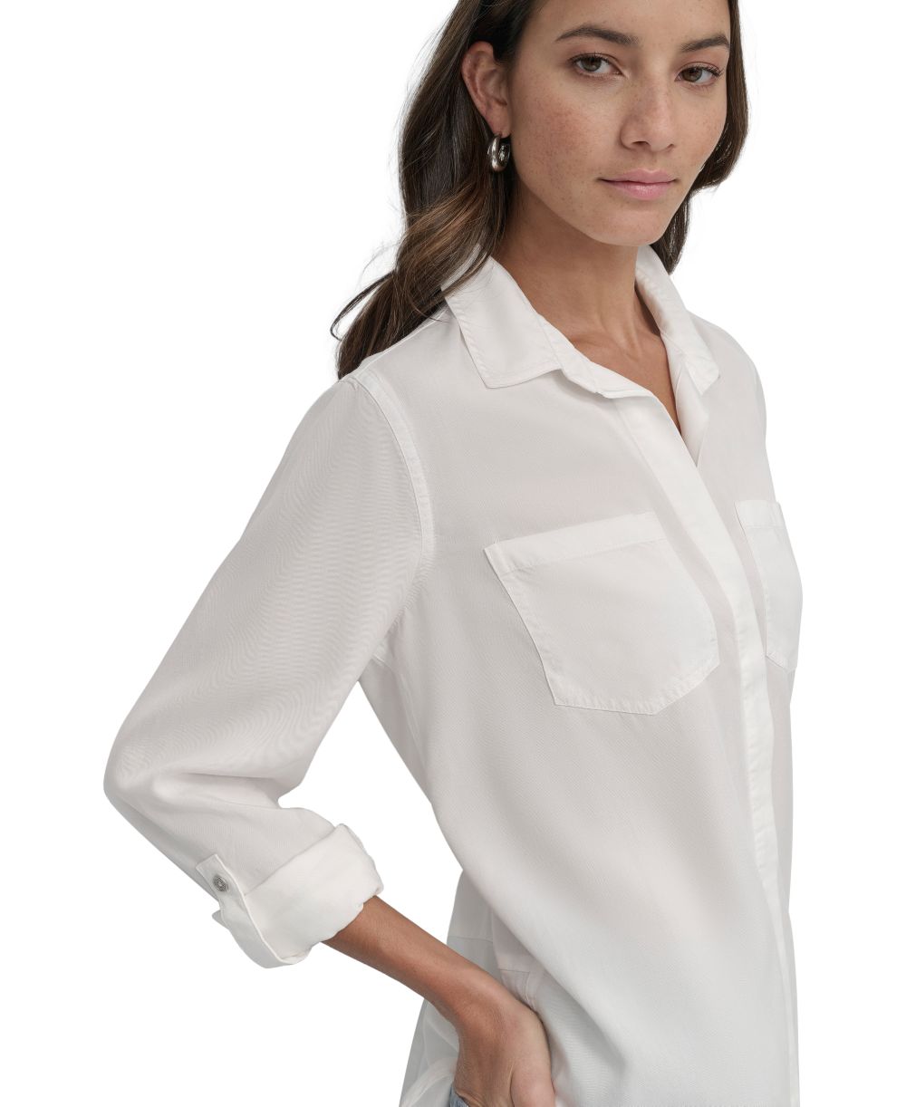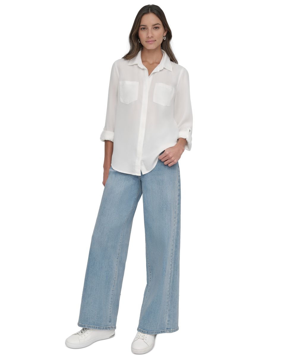DKNY Jeans Womens Roll Tab Sleeve Button Front Shirt