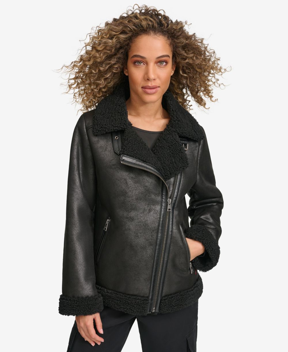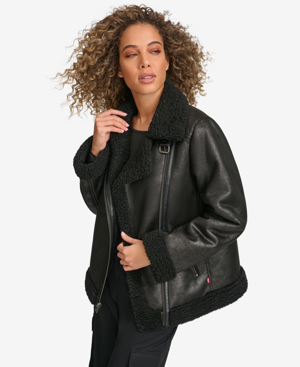 Levis Womens Faux Shearling Asymmetrical Moto Jacket
