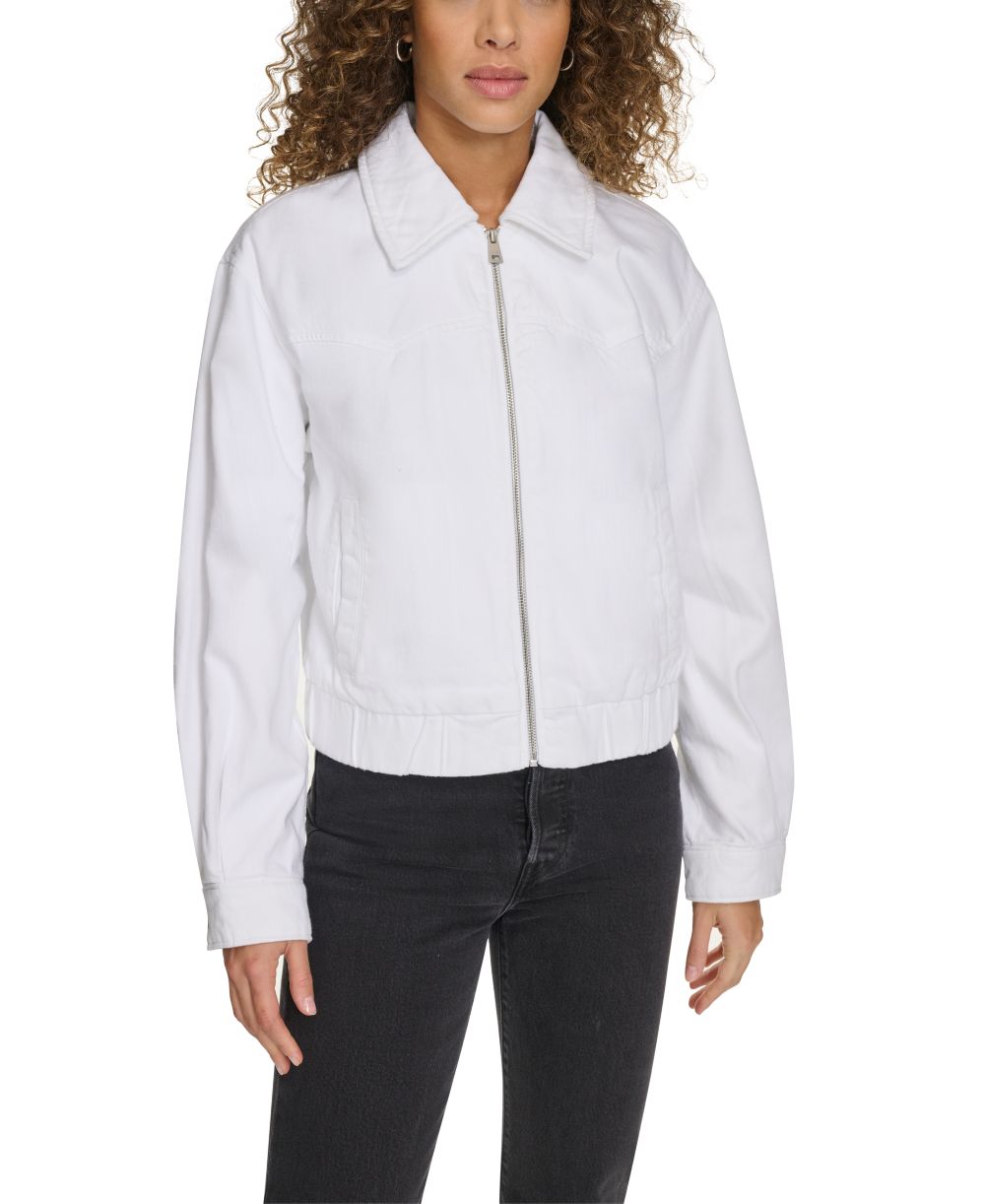 Levis Womens Western Zip Front Denim Bomber Jacket