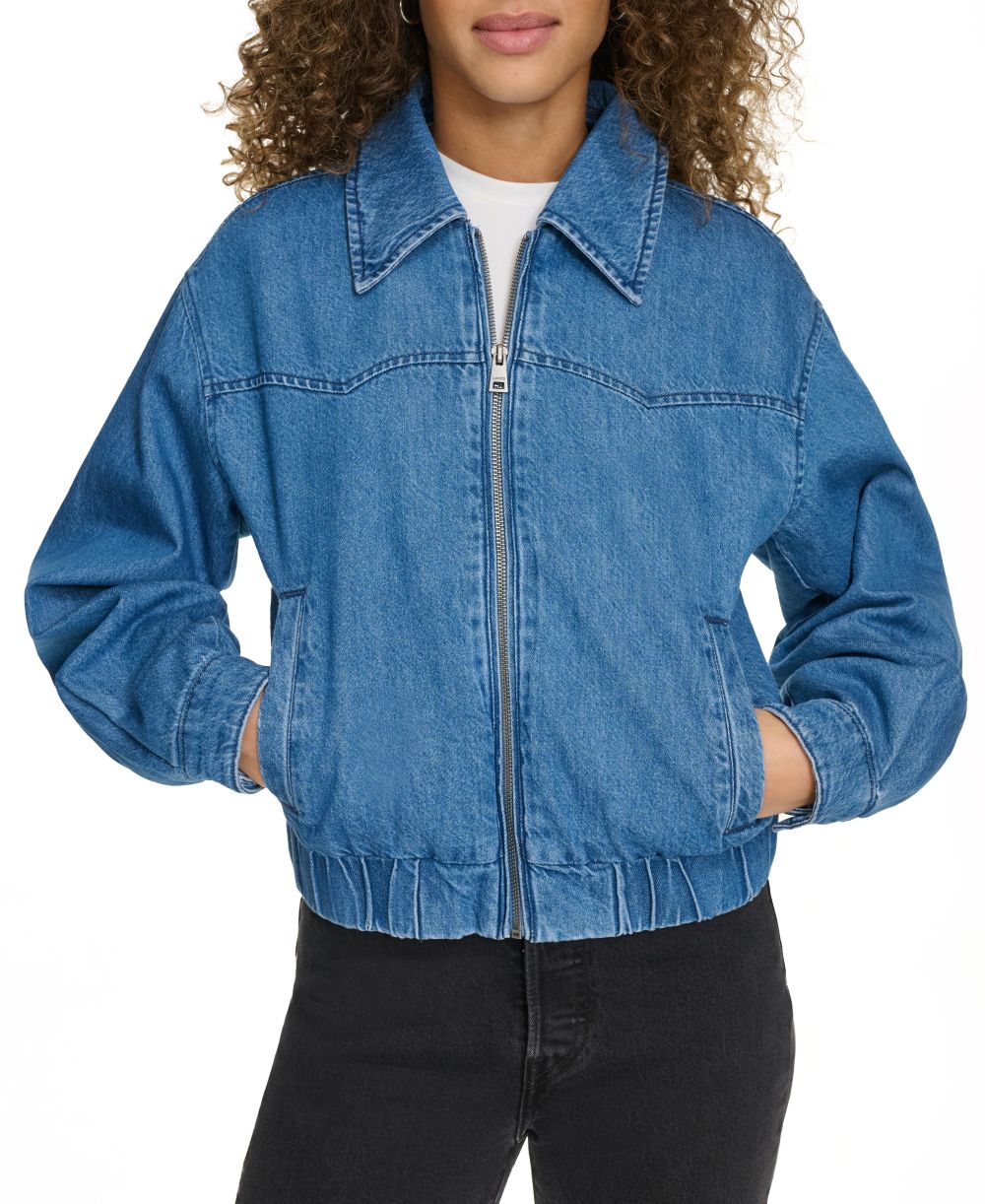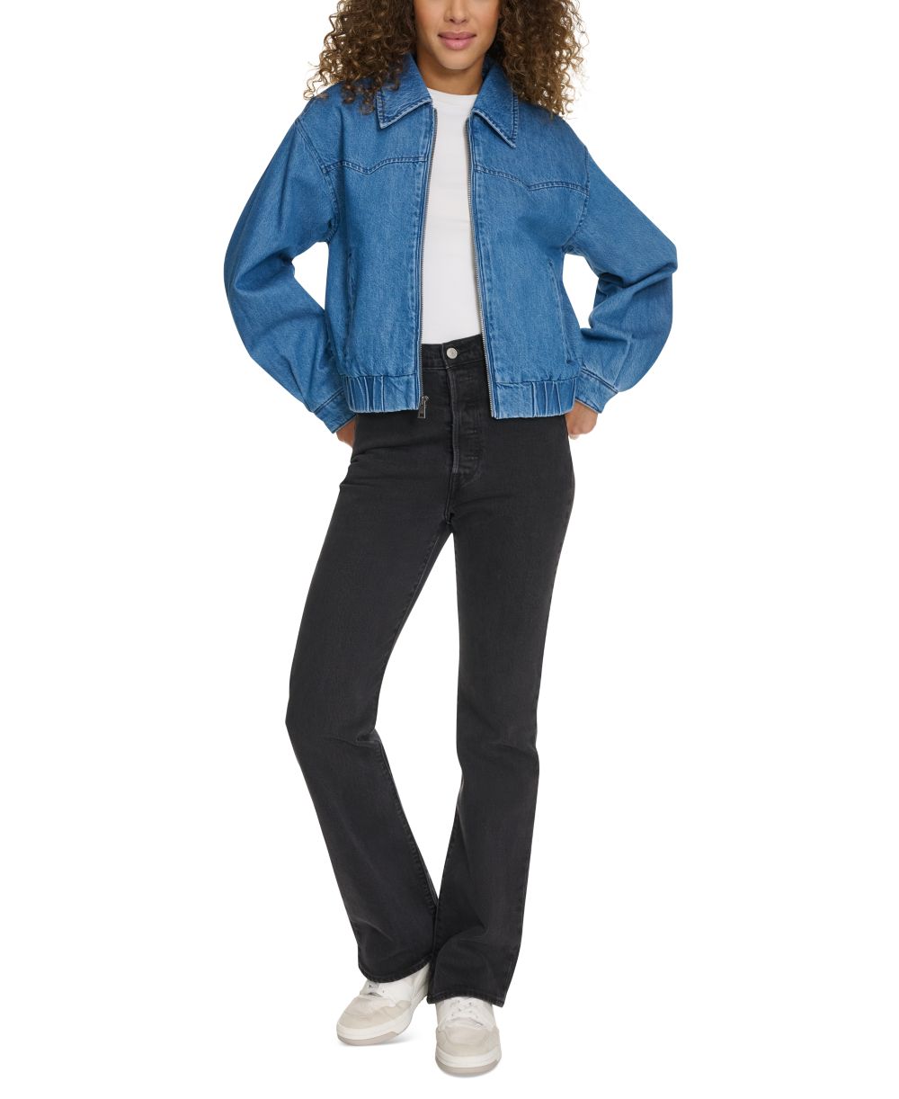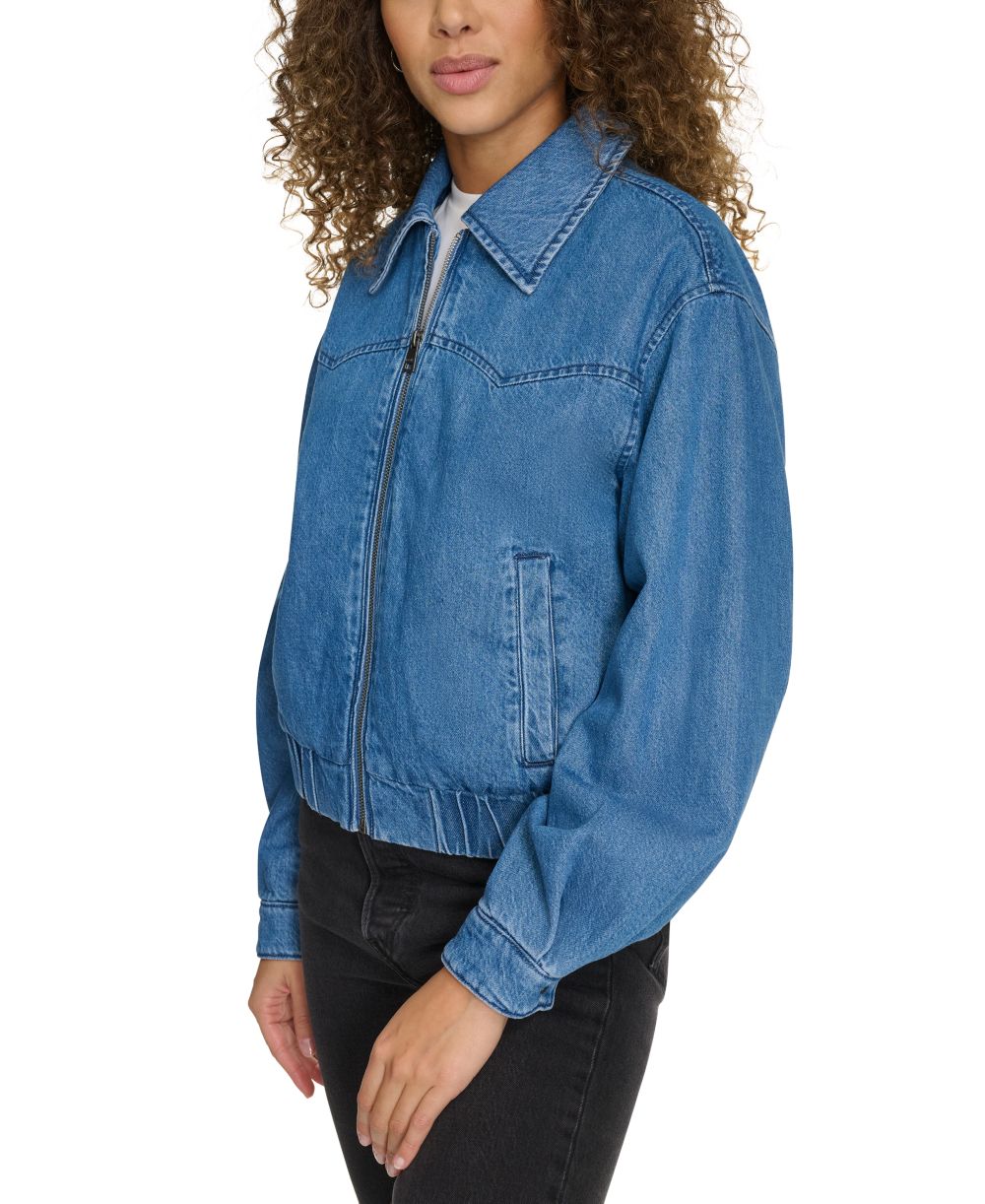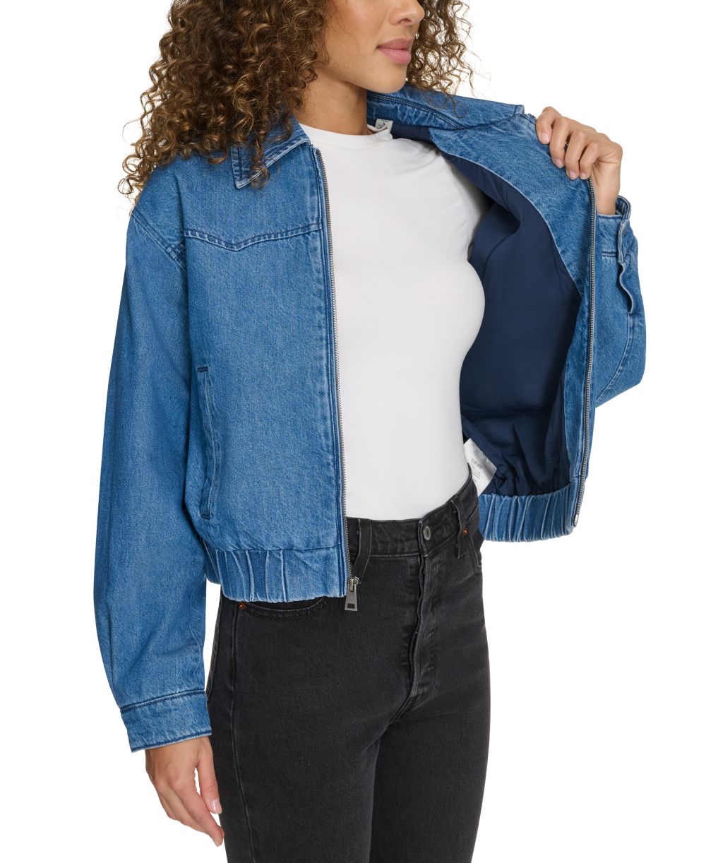 Levis Womens Western Zip Front Denim Bomber Jacket