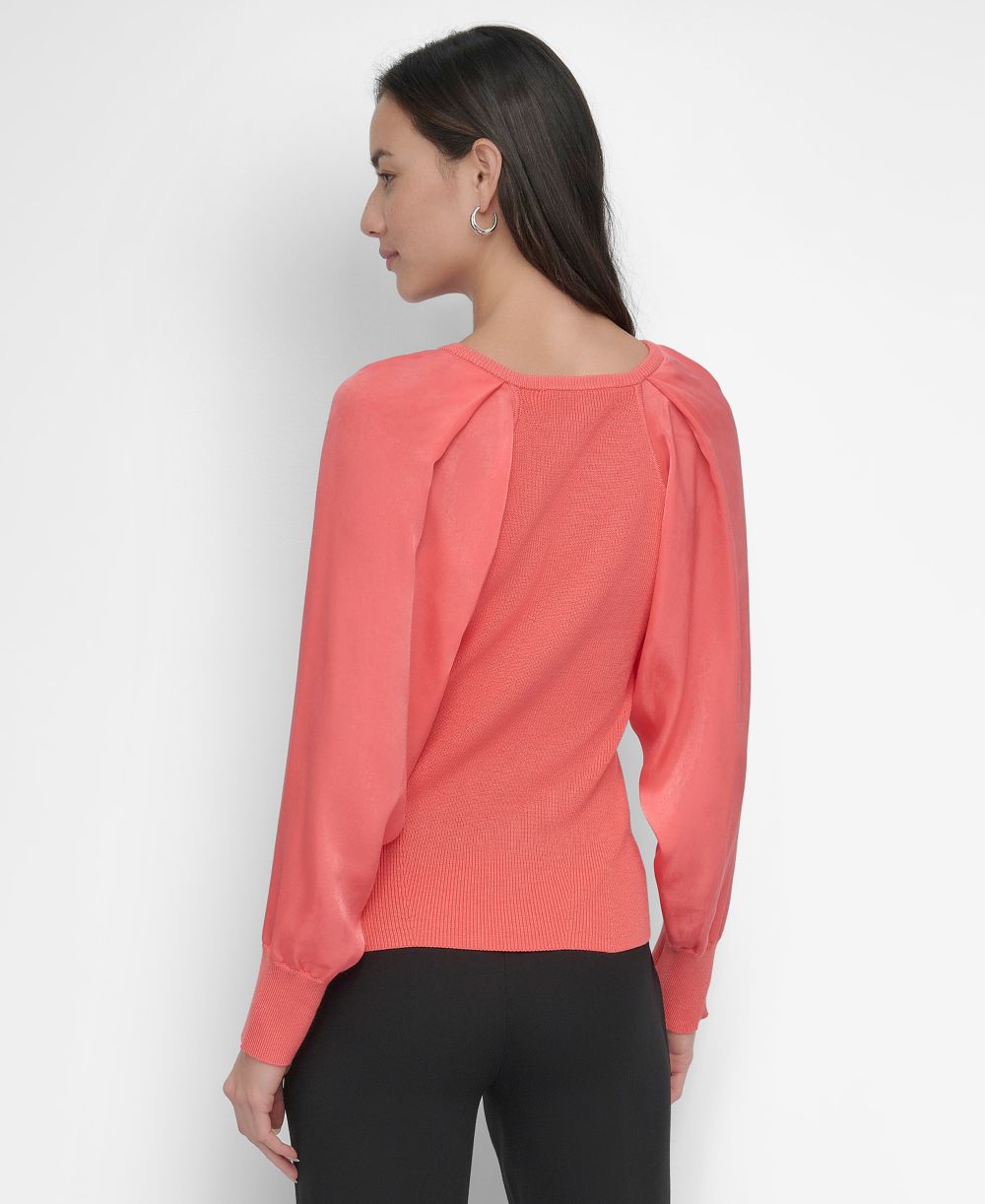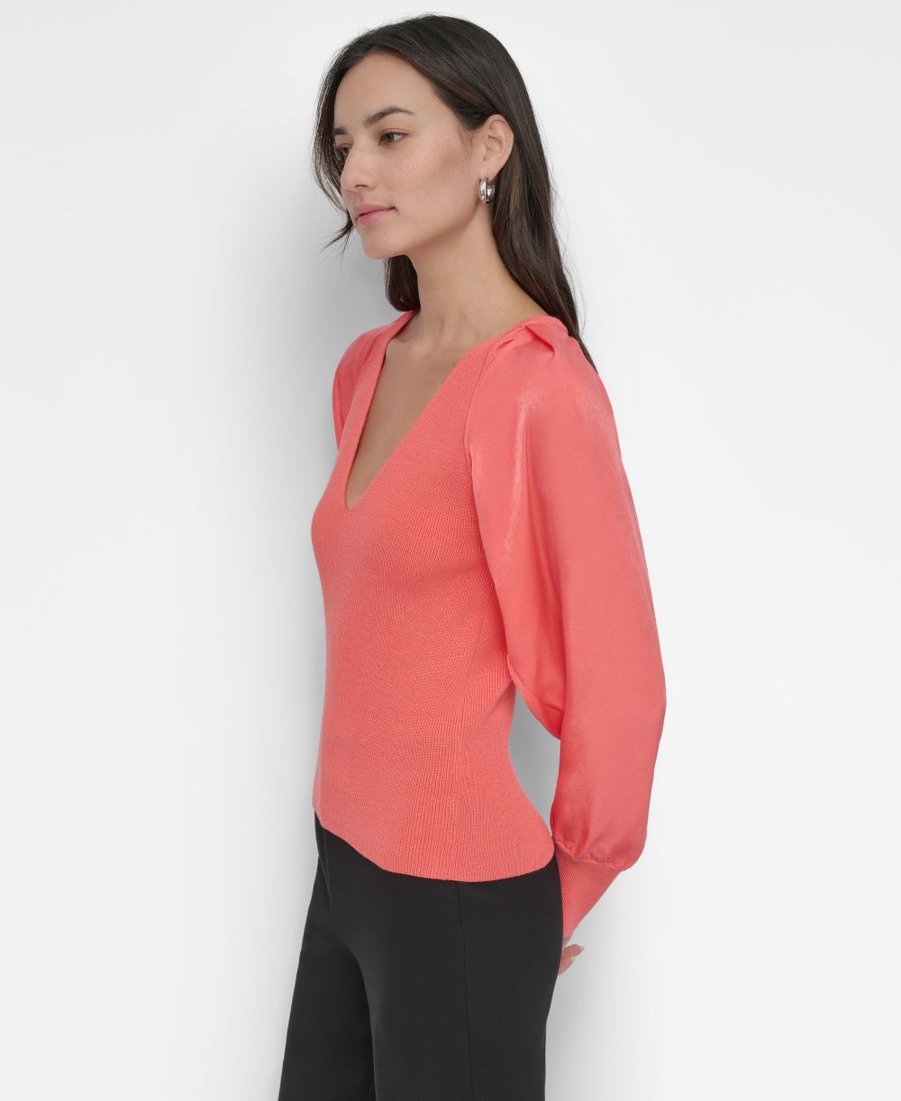 DKNY Womens Mixed Media V Neck Top