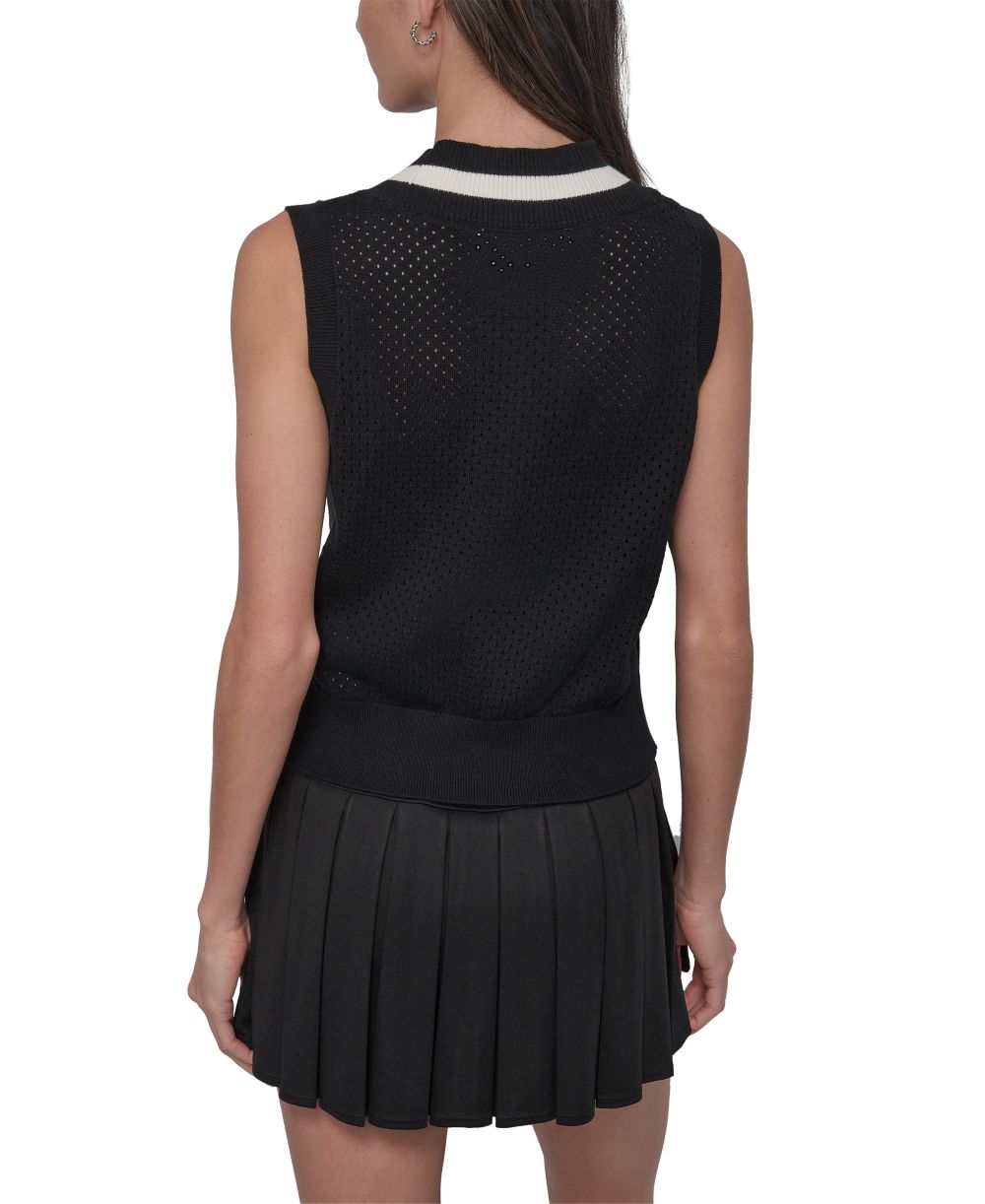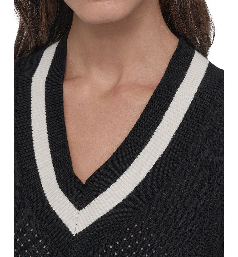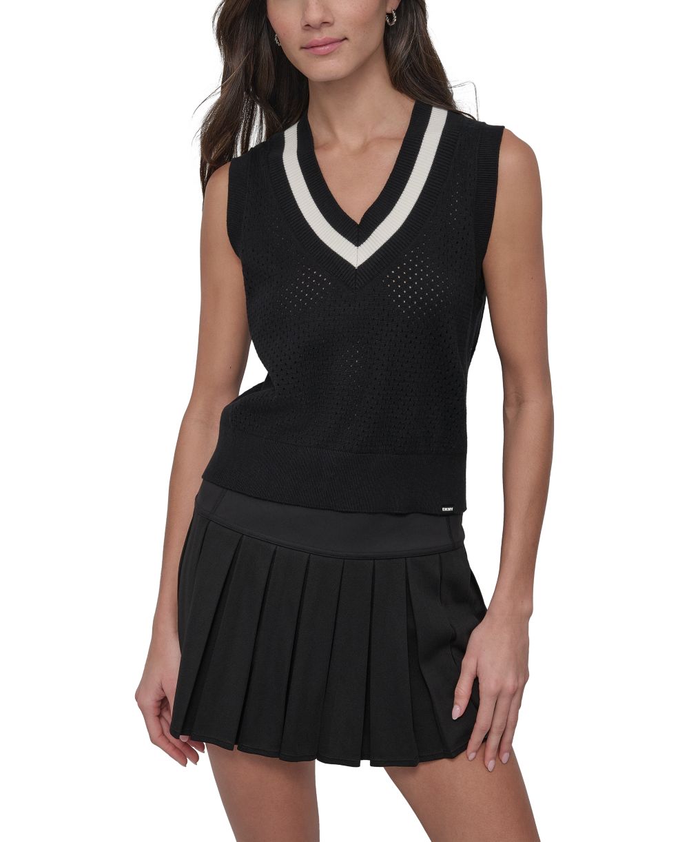 DKNY Womens Open Knit Sleeveless V Neck Sweater