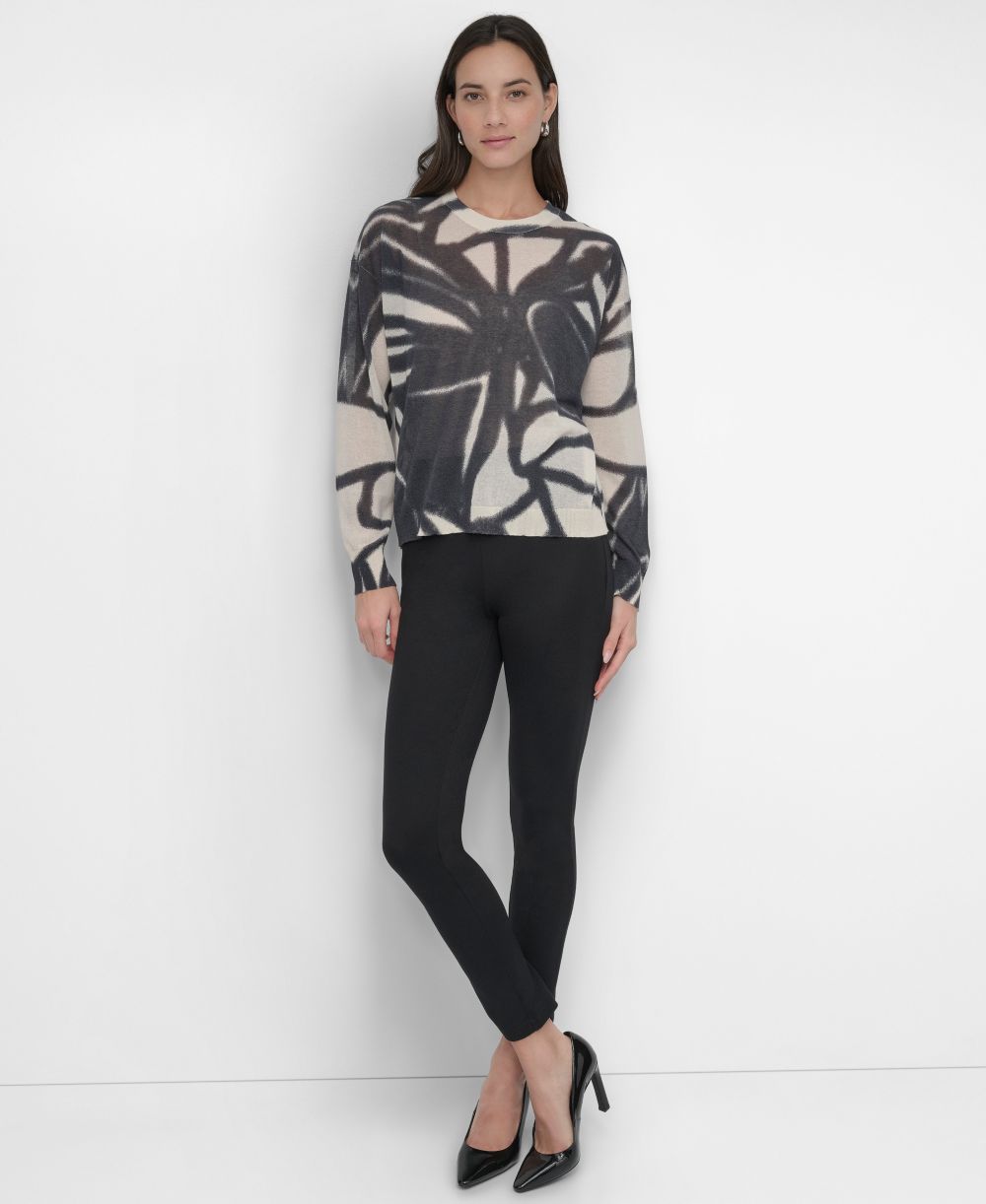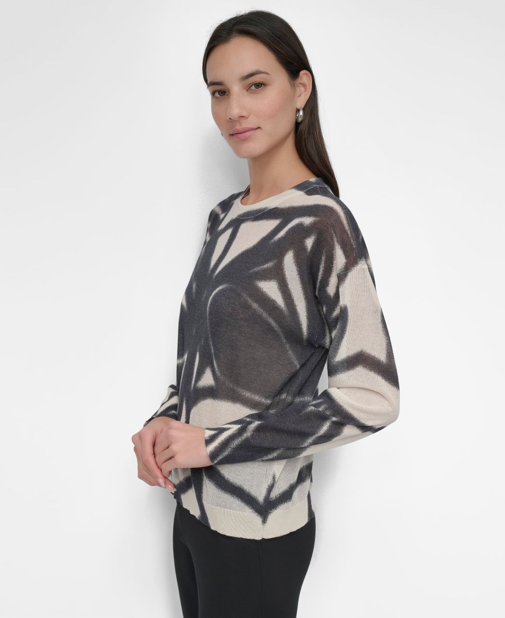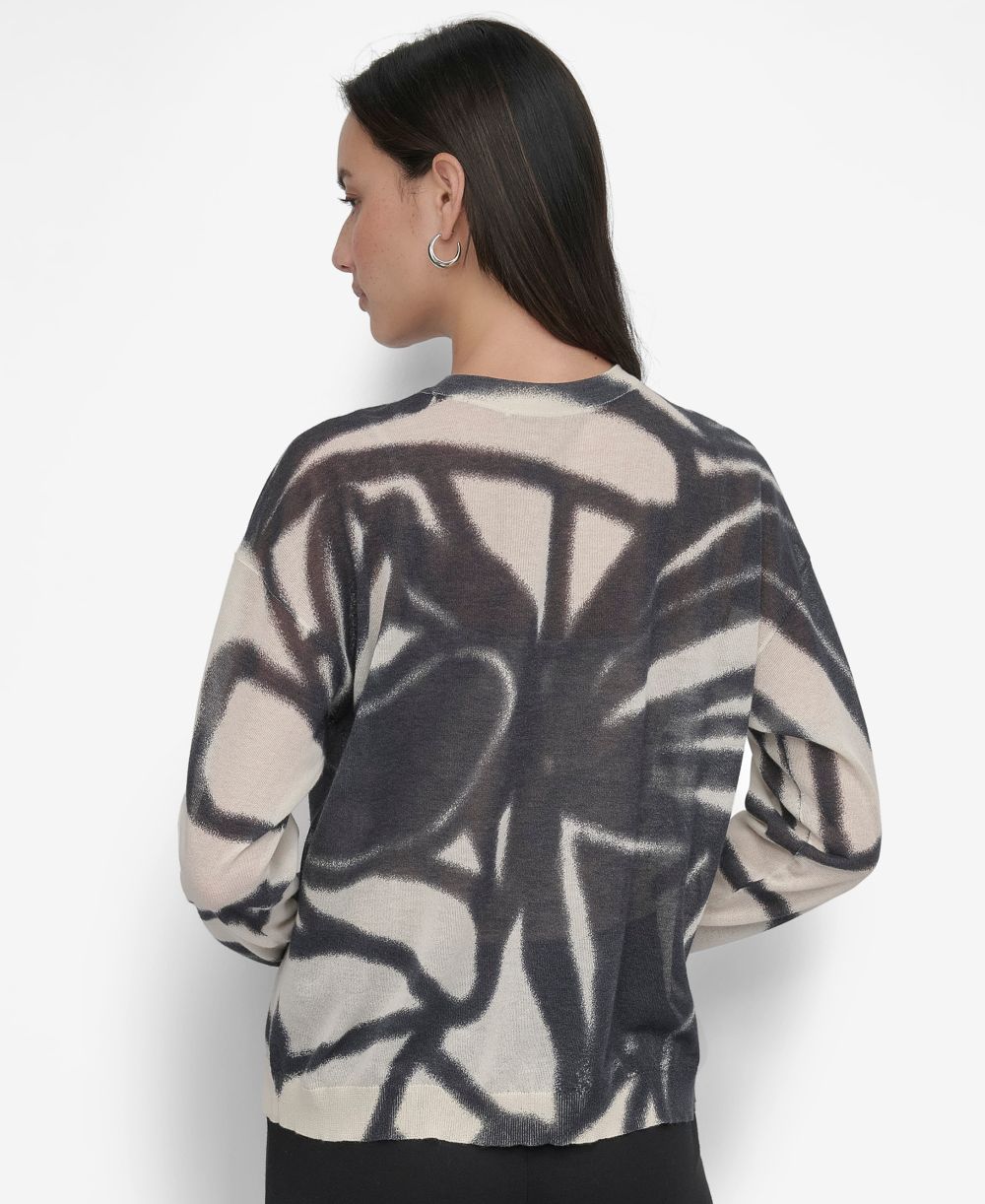 DKNY Womens Abstract Print Long Sleeve Sweater