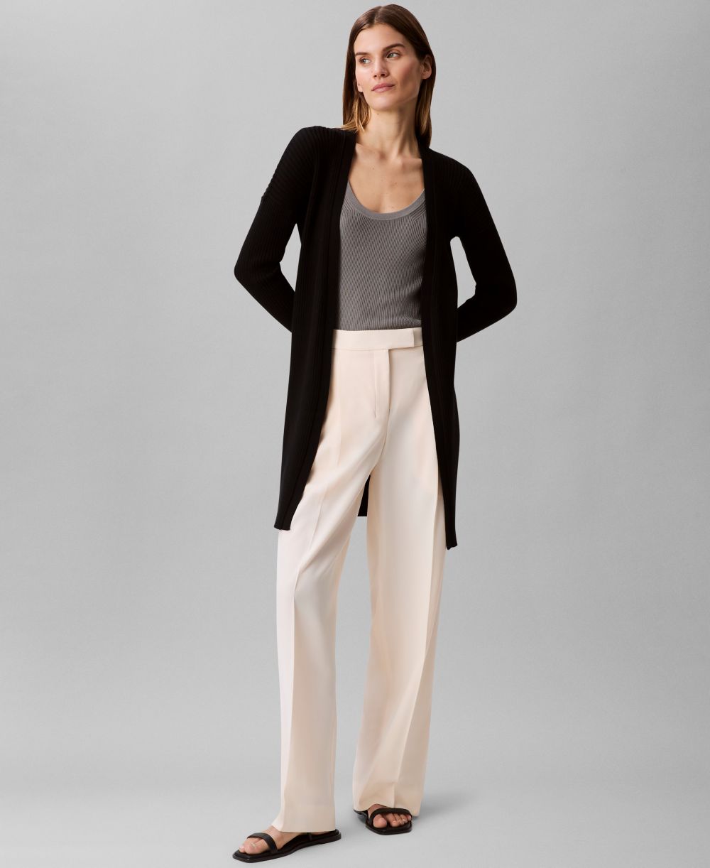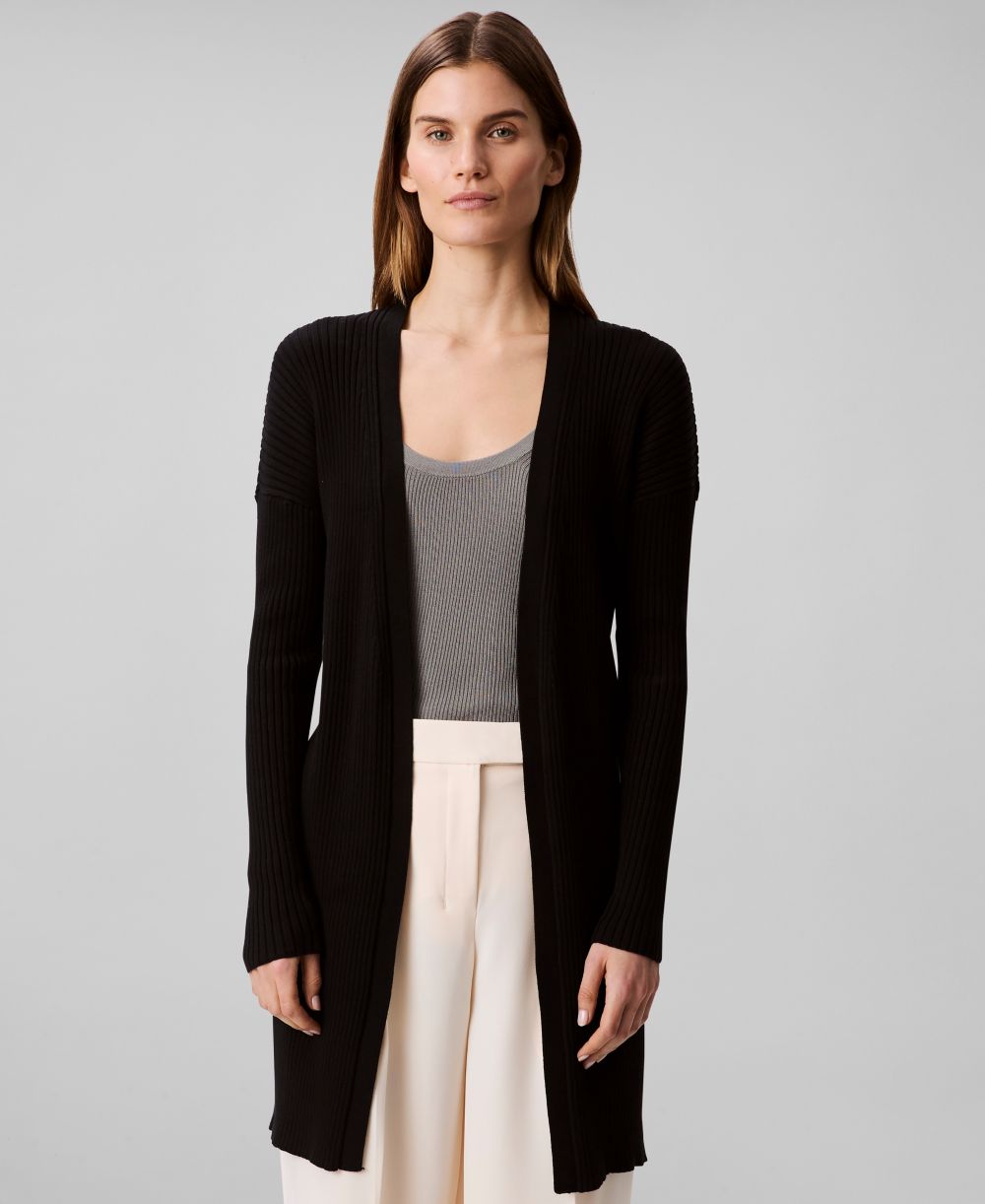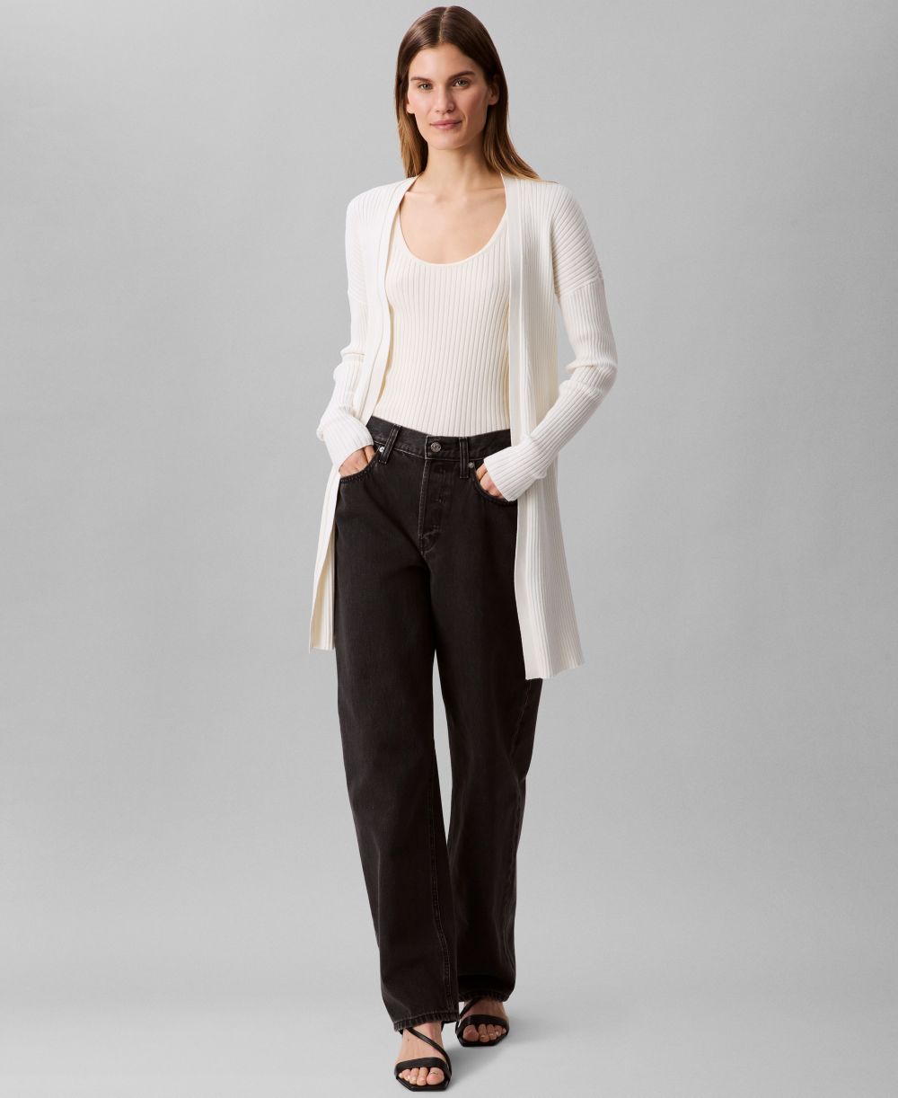 Calvin Klein Womens Cotton Ribbed Open Front Duster Cardigan