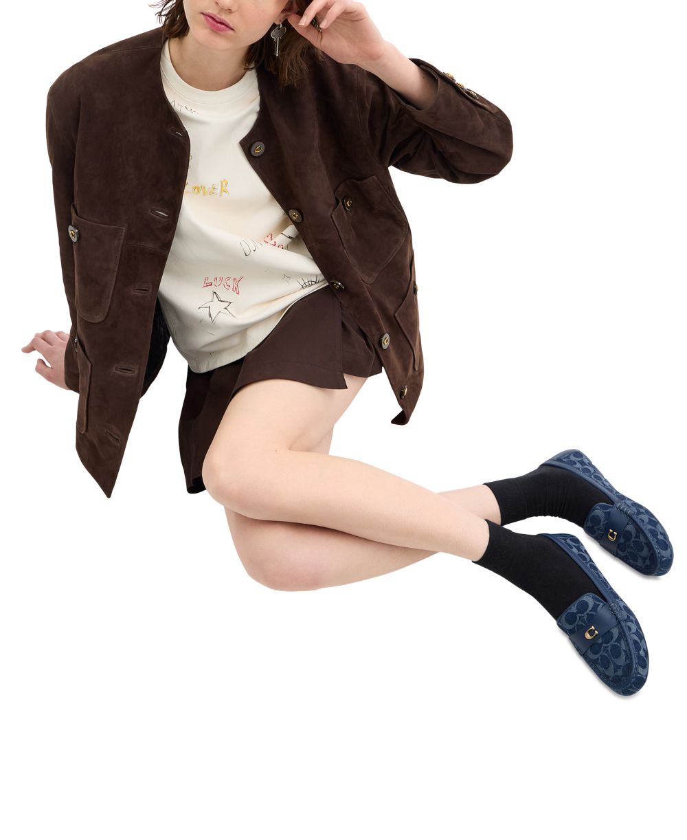 COACH Womens Sculpted C Leather Driver Loafer Flats