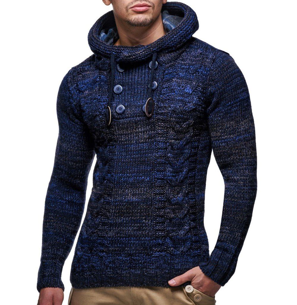 Leif Nelson Mens Knit Hoodie Sweater with Button Accents Cable Knit Design