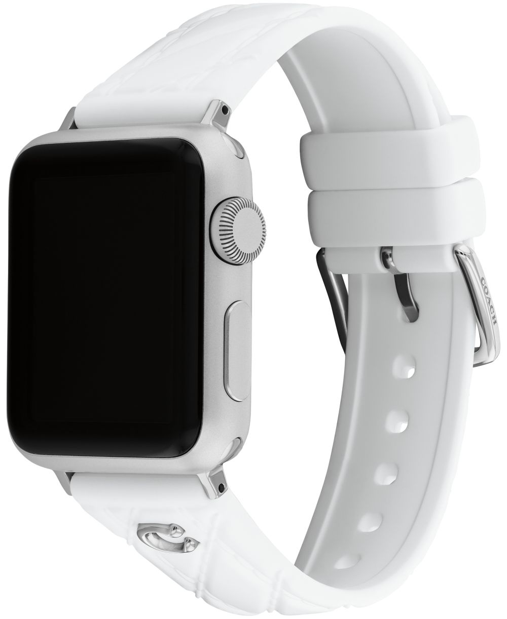 COACH Womens Quilted White Silicone Apple Watch Strap 38mm 40mm 41mm