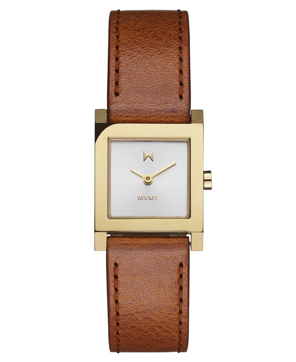 MVMT Womens Marquee Square Brown Leather Strap Watch 22mm