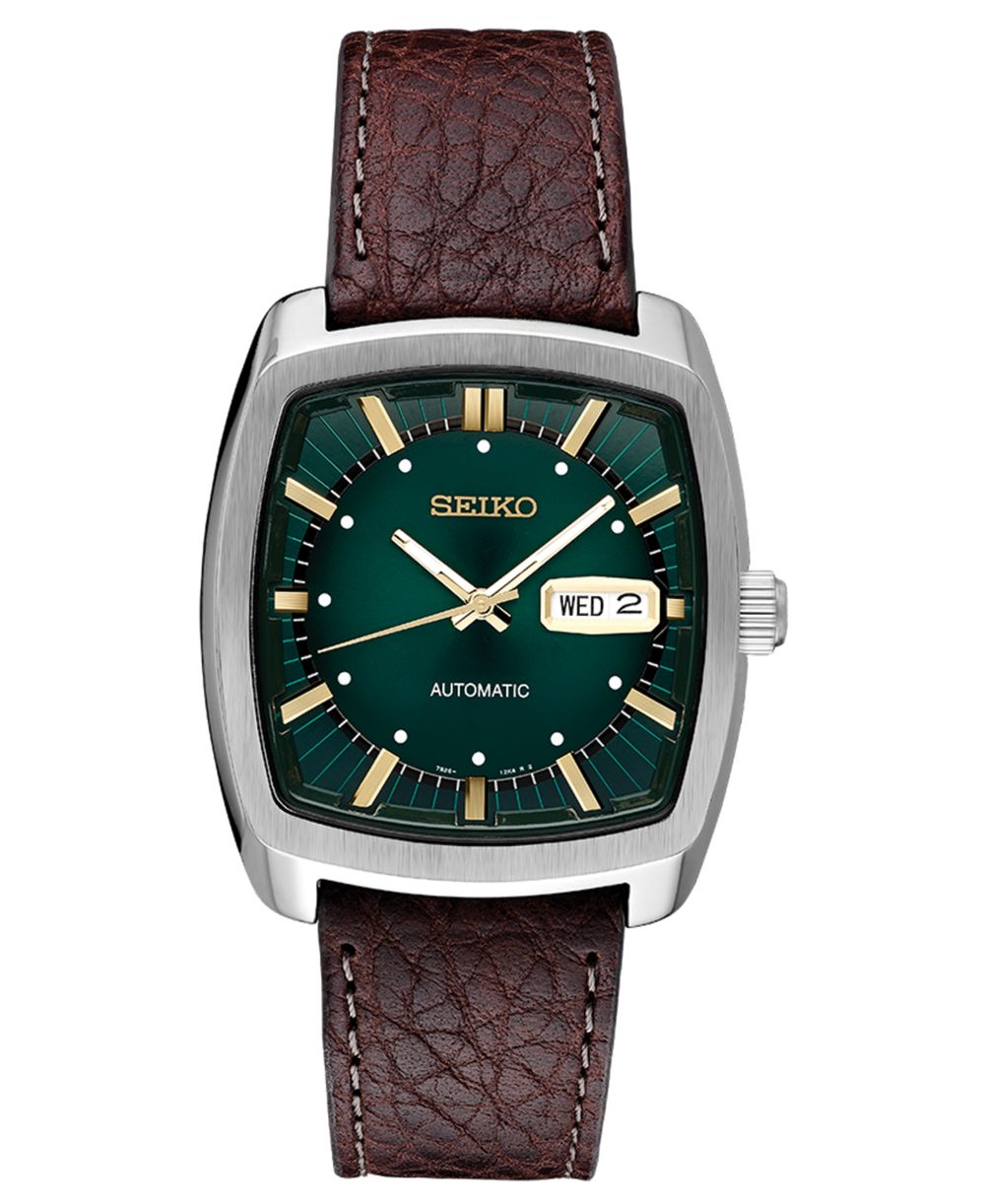Seiko Mens Automatic Recraft Brown Leather Strap Watch 40mm