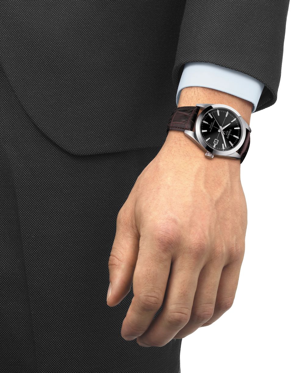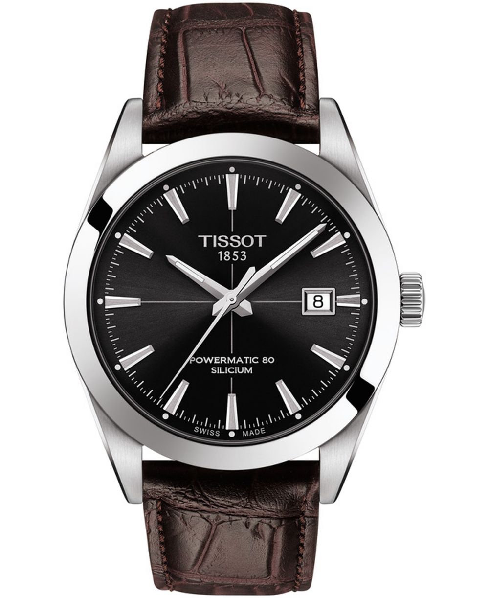 Tissot Mens Swiss Automatic Powermatic 80 Silicium Brown Leather Strap Watch 40mm