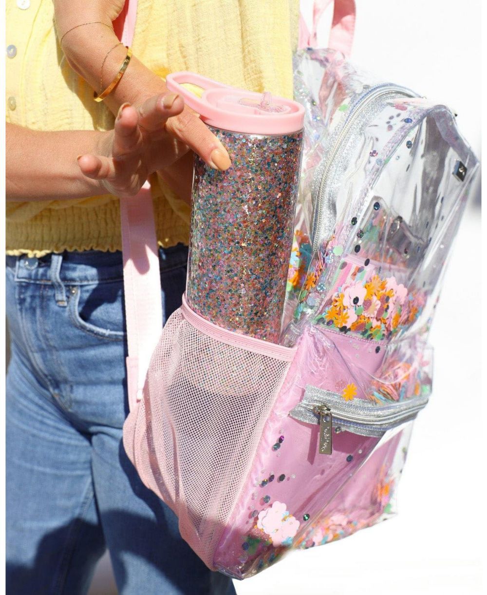 Packed Party Flower Shop Clear Backpack Womens Fashion Book Bag For Ladies at School Work Travel and the Beach (Medium