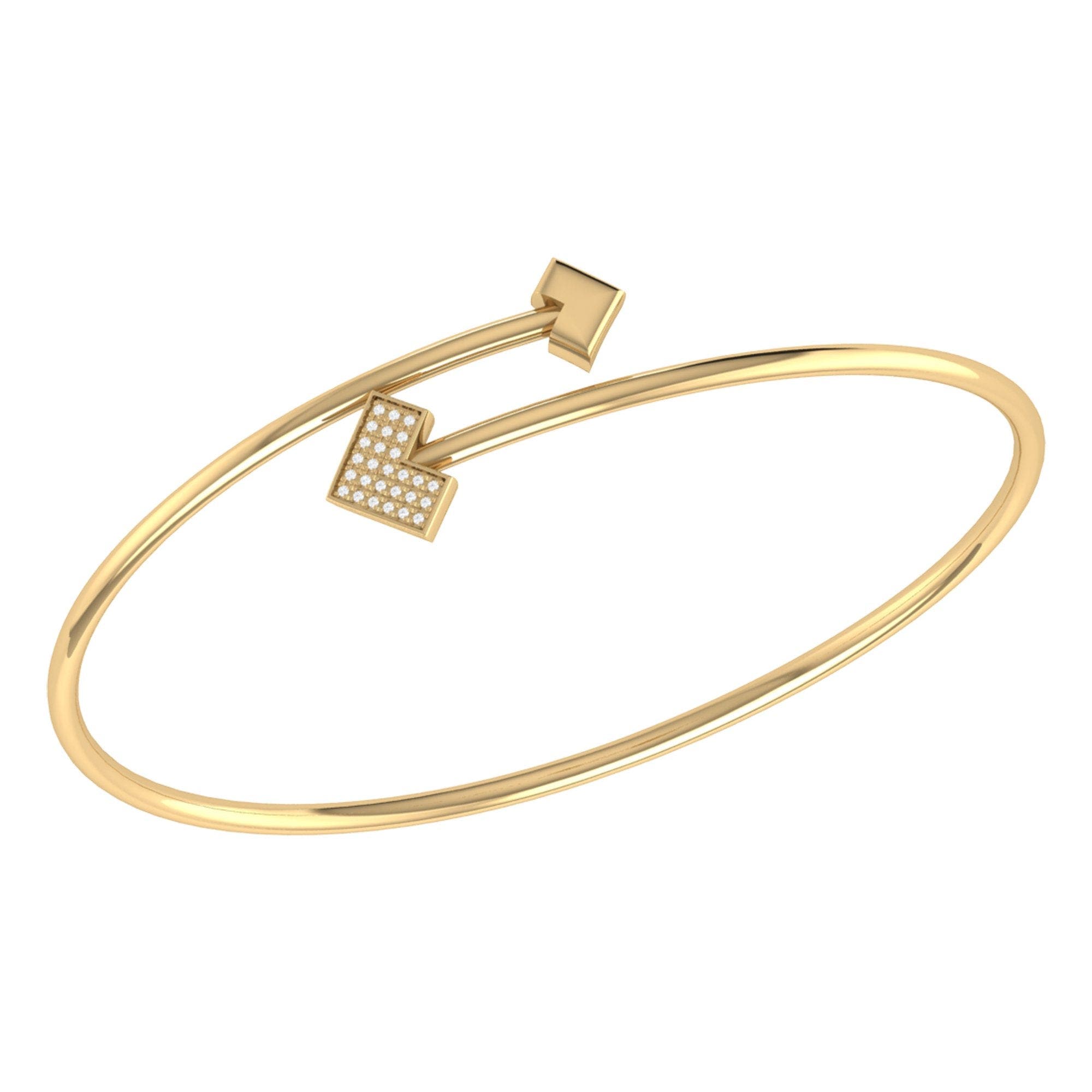 LuvMyJewelry One Way Arrow Sterling Silver Diamond Bangle_14Kt Gold Vermeil On Sterling