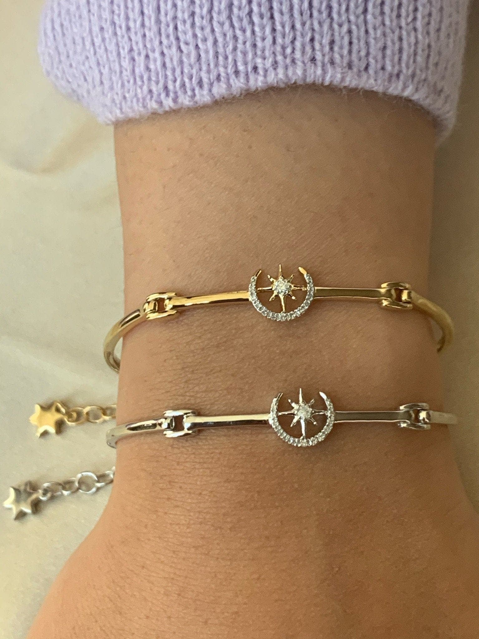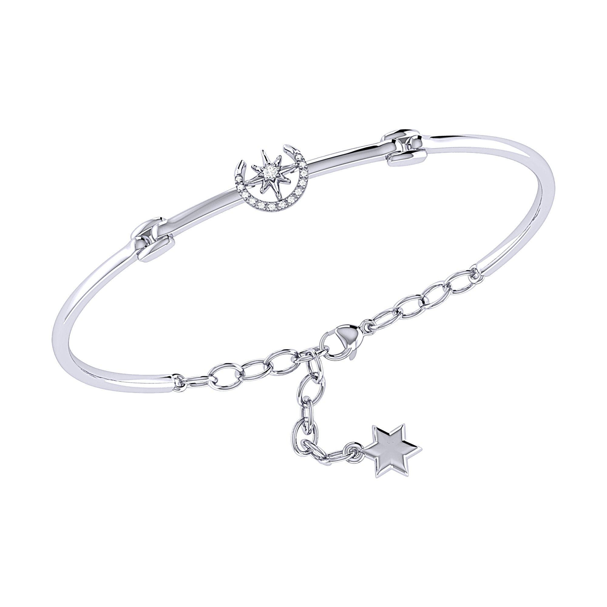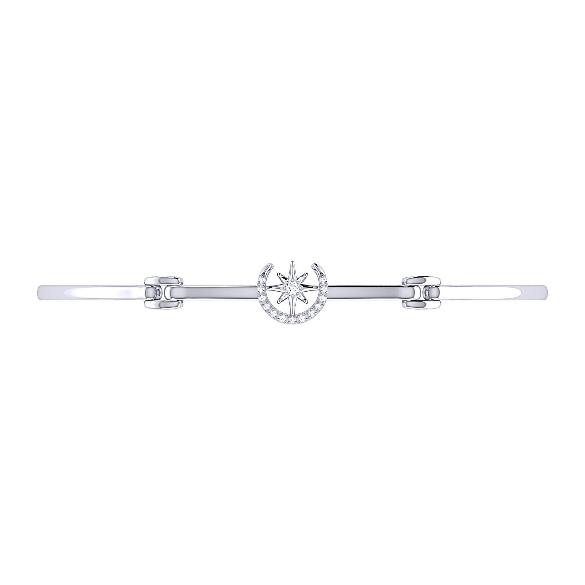 LuvMyJewelry North Star Crescent Sterling Silver Diamond Bangle_Silver