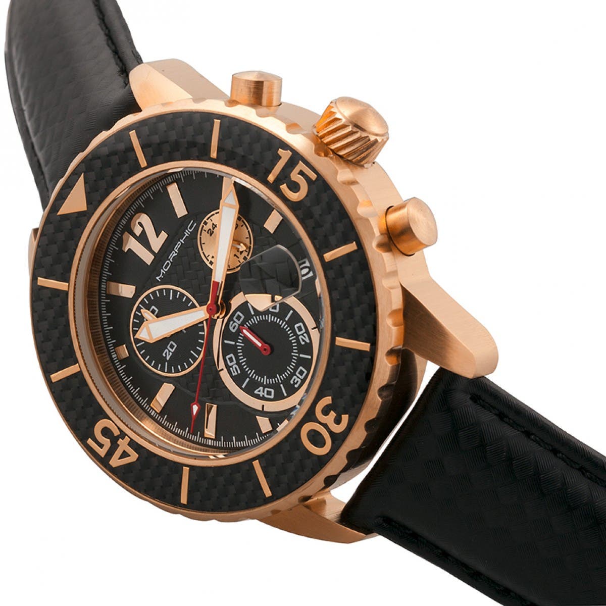 Morphic M51 Series Chronograph Leather-Band Watch w/Date_Rose Gold/Black