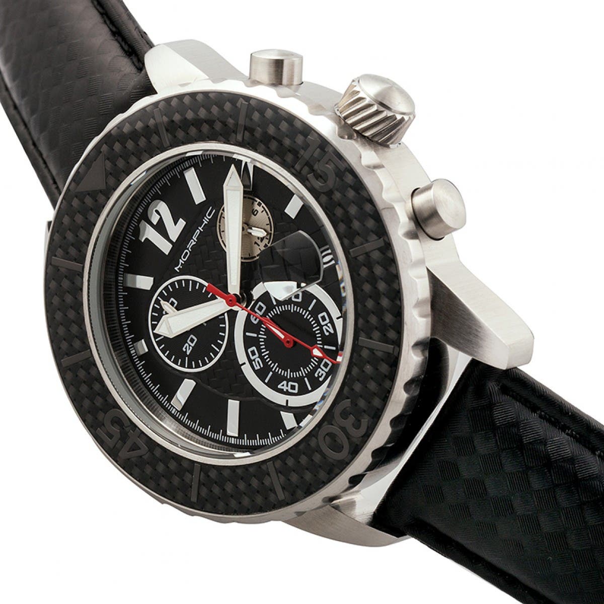 Morphic M51 Series Chronograph Leather-Band Watch w/Date_Silver/Black