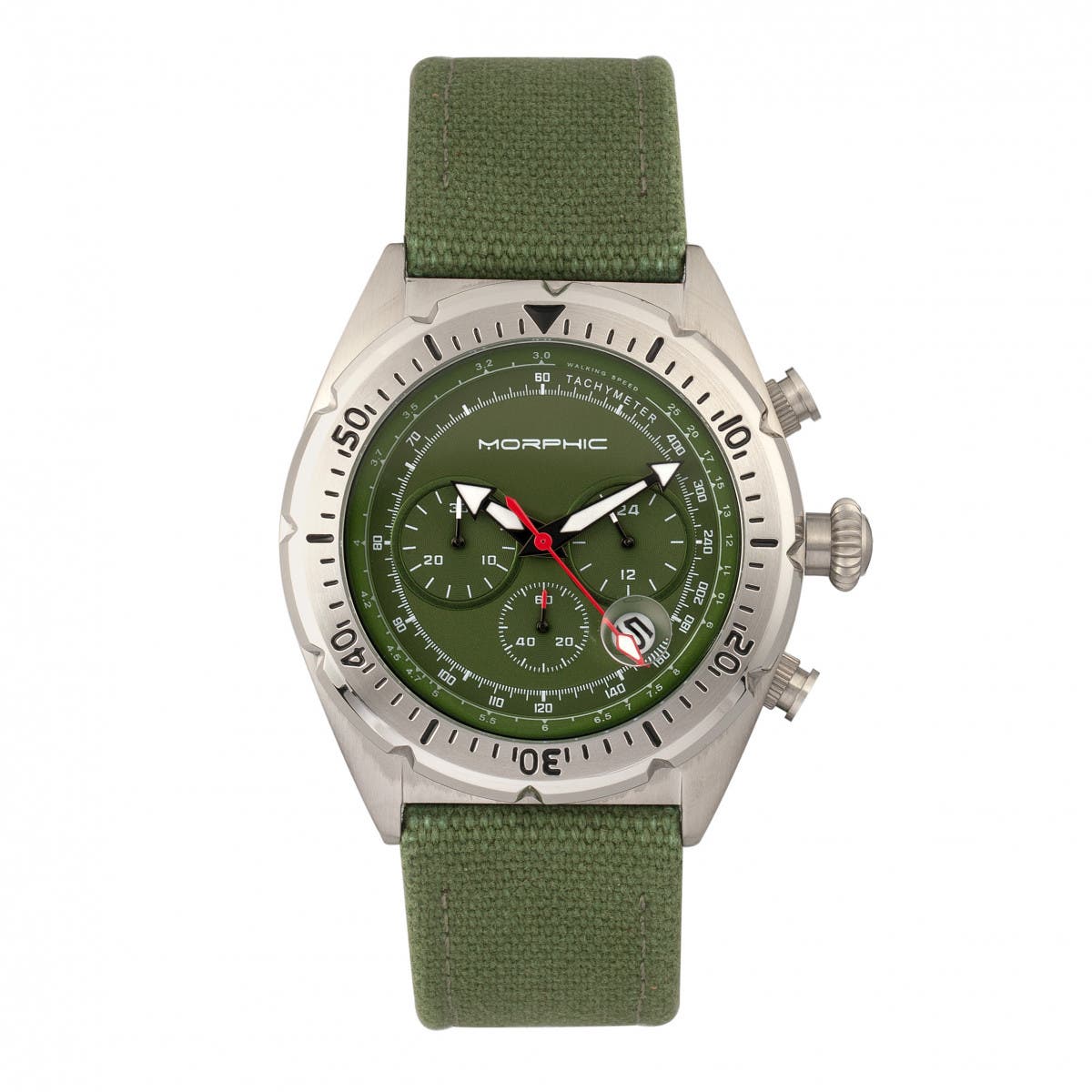 Morphic M53 Series Chronograph Fiber-Weaved Leather-Band Watch w/Date_Silver/Olive