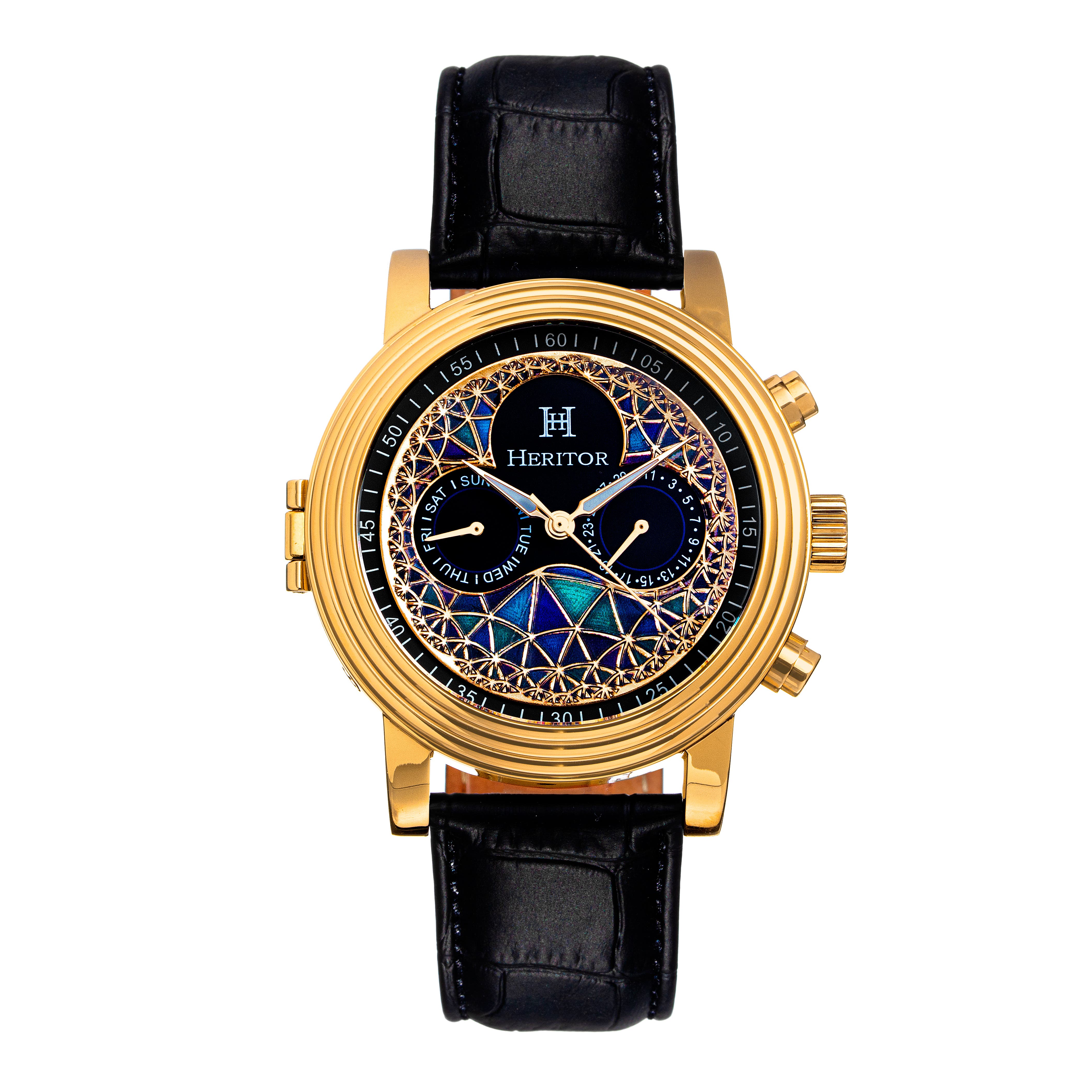 Heritor Automatic Legacy Leather-Band Watch w/Day/Date_Gold/Black