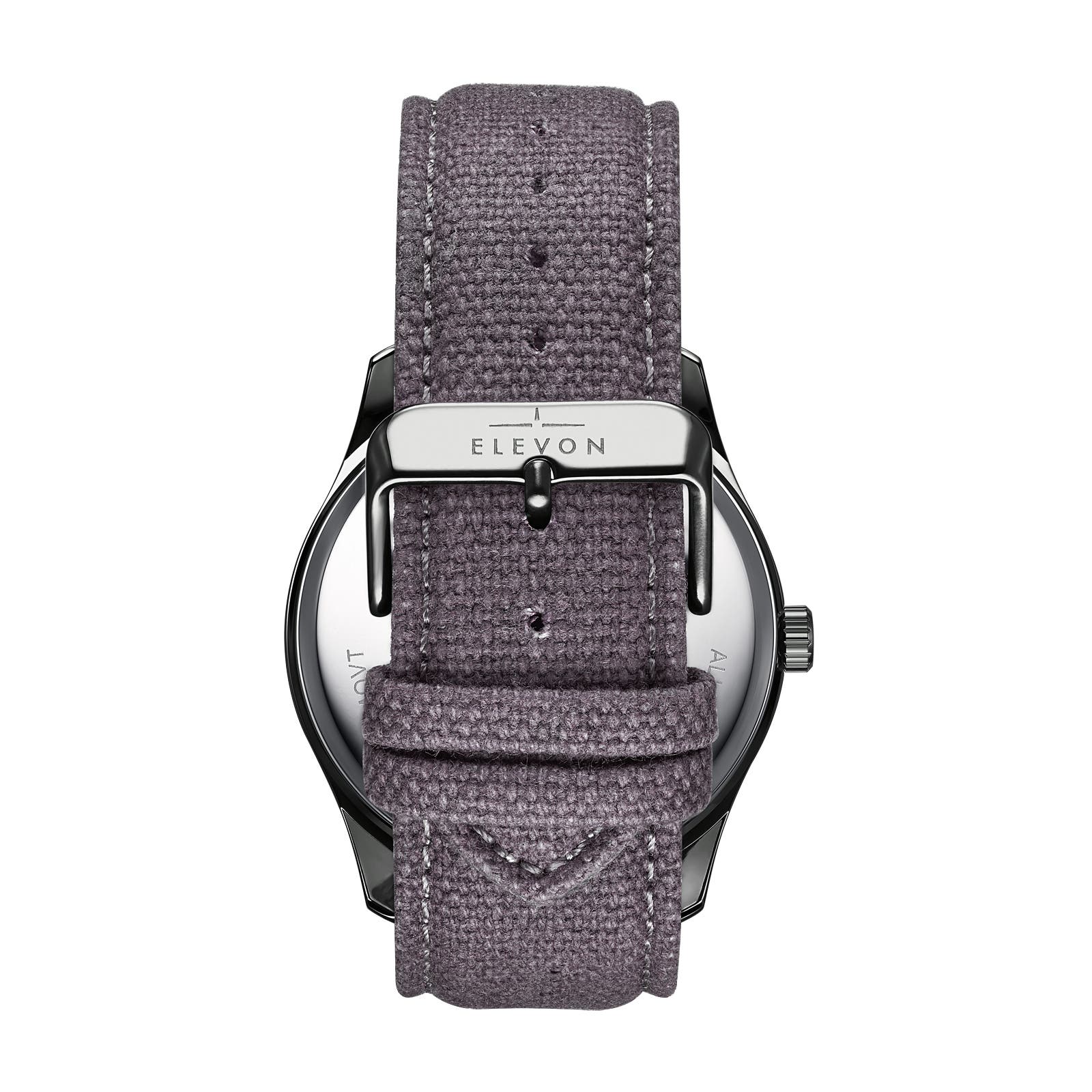 Elevon Crosswind Canvas-Overlaid Leather-Band Watch w/ Date_Gunmetal/Grey