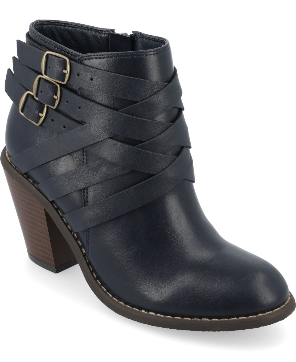 Journee Collection Womens Strap Wide Width Round Toe Stacked Heel Dress Booties