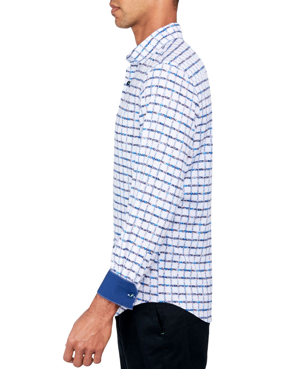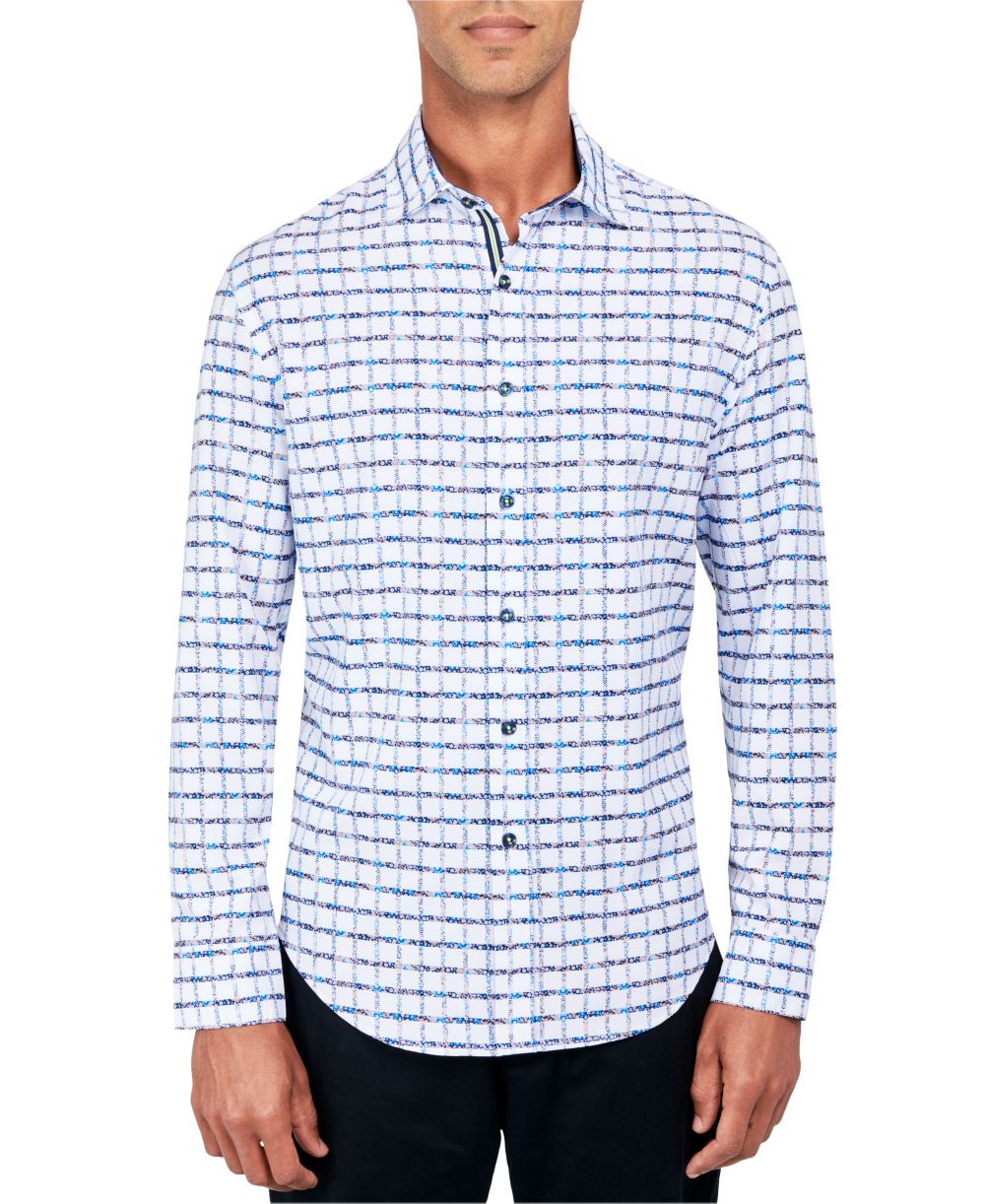 Society of Threads Mens Regular Fit Non Iron Performance Stretch Floral Grid Print Button Down Shirt