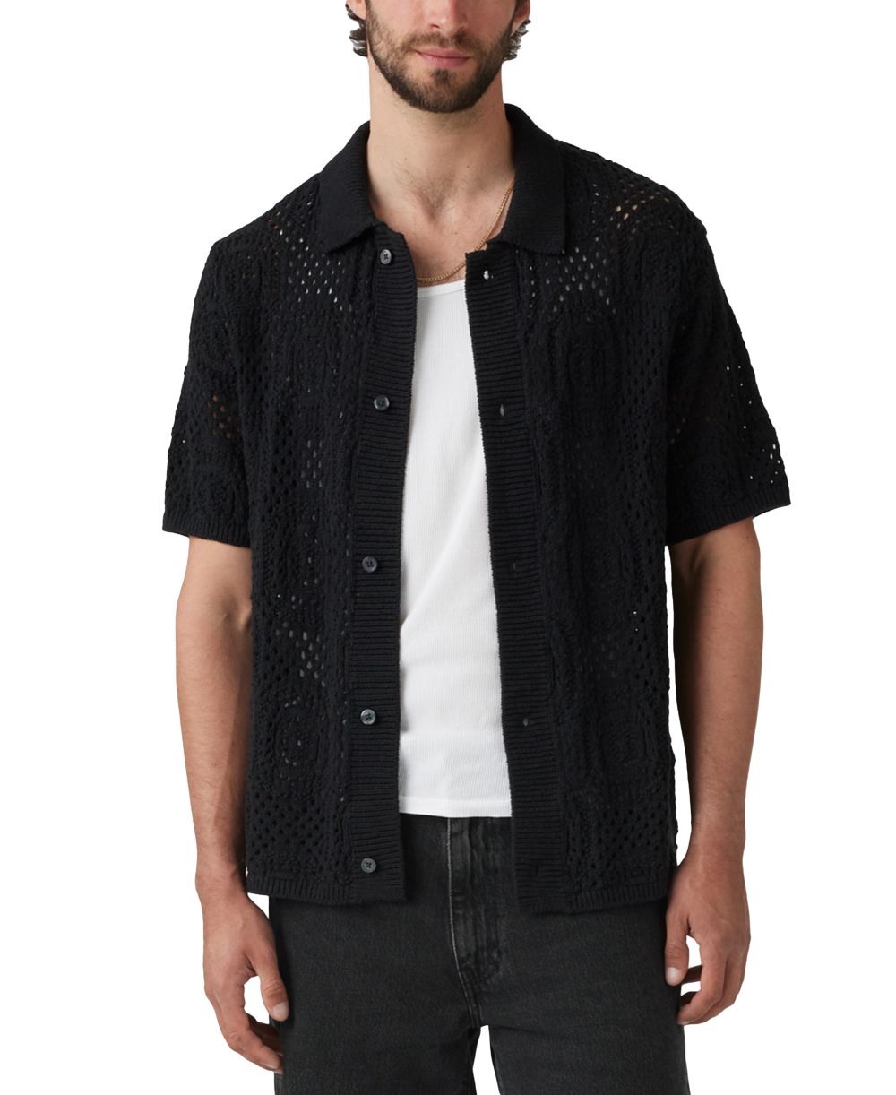 Levis Mens Straight Fit Pointelle Crochet Button Down Camp Shirt