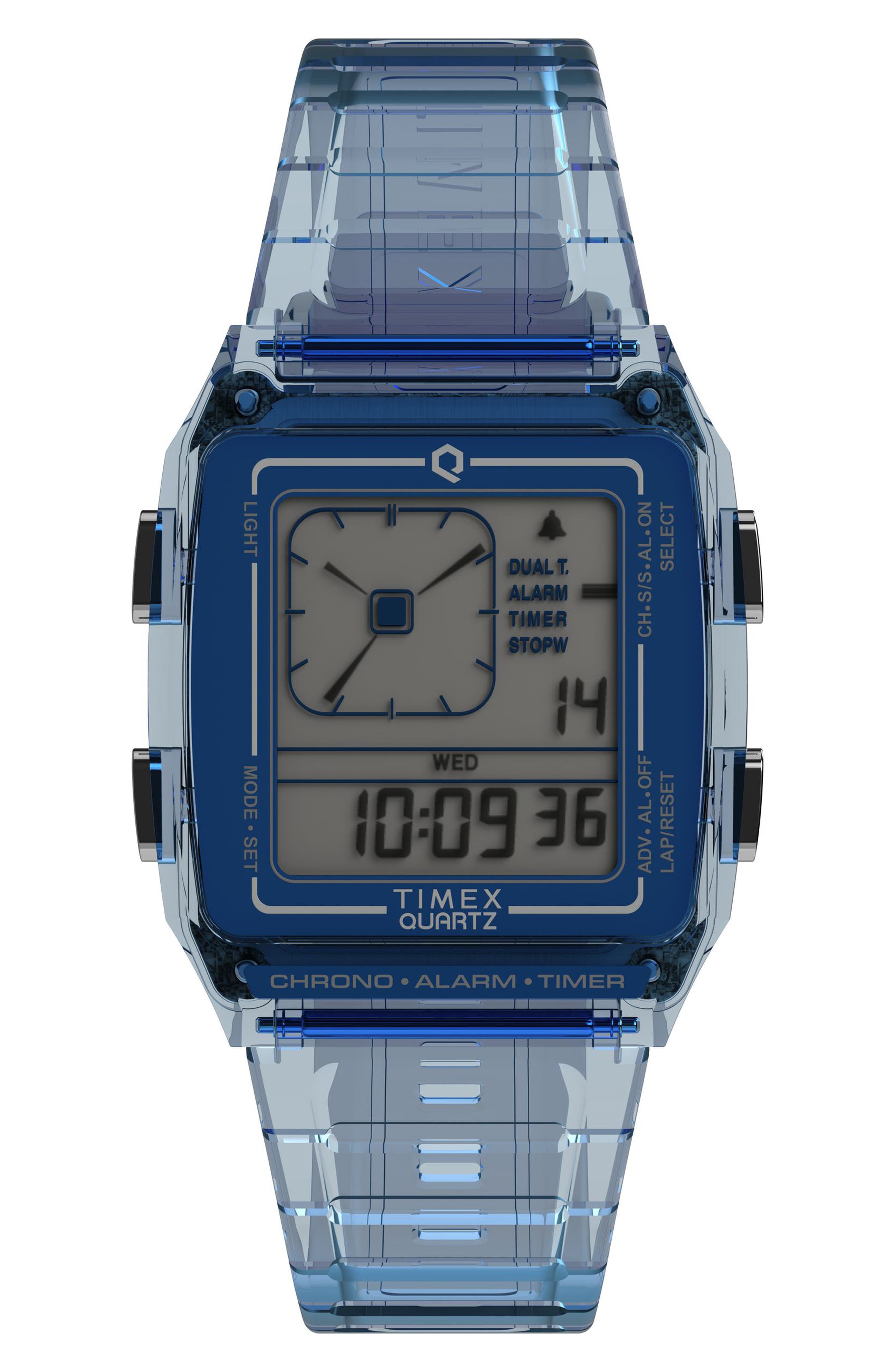 Timex Q Timex Digital LCA Chronograph Resin Strap Watch 35mm_Blue