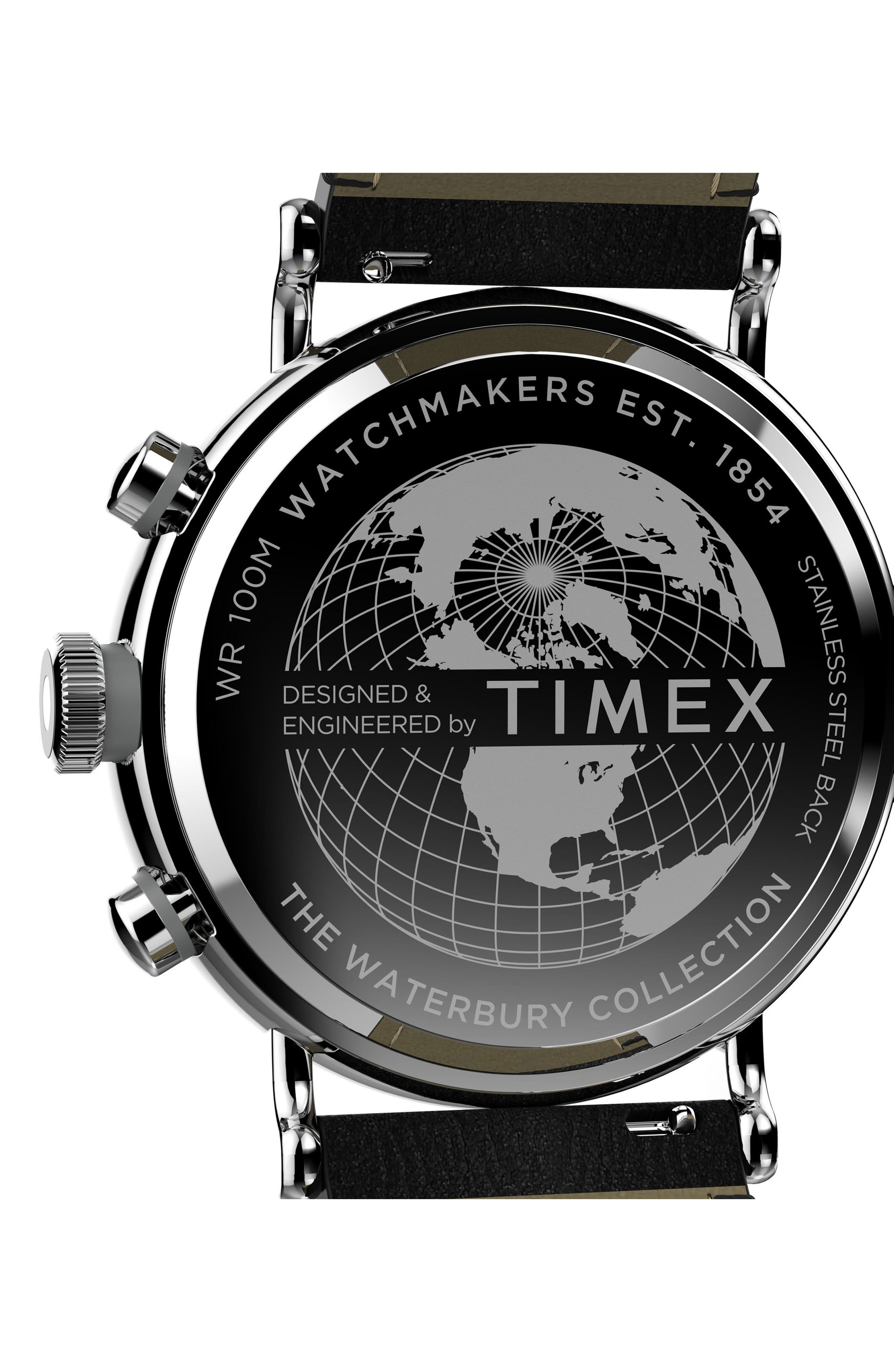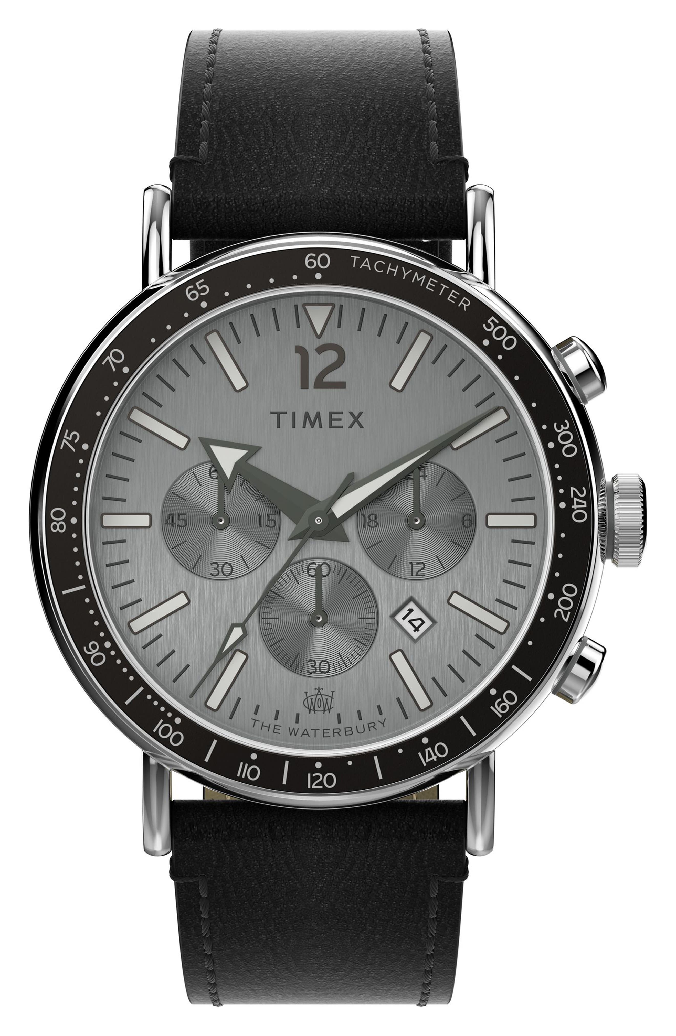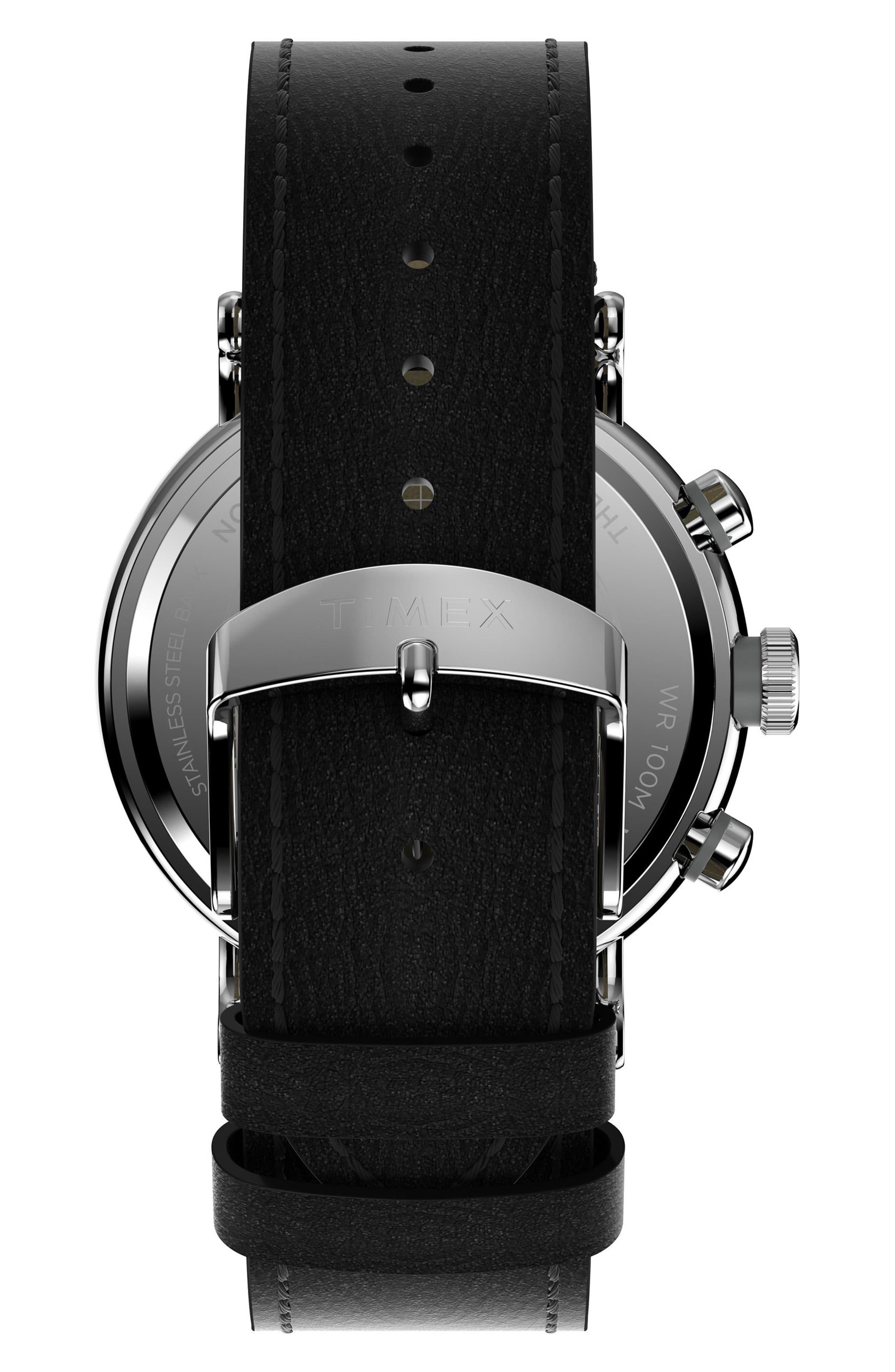 Timex Waterbury Standard Chronograph Leather Strap Watch 43mm_Black