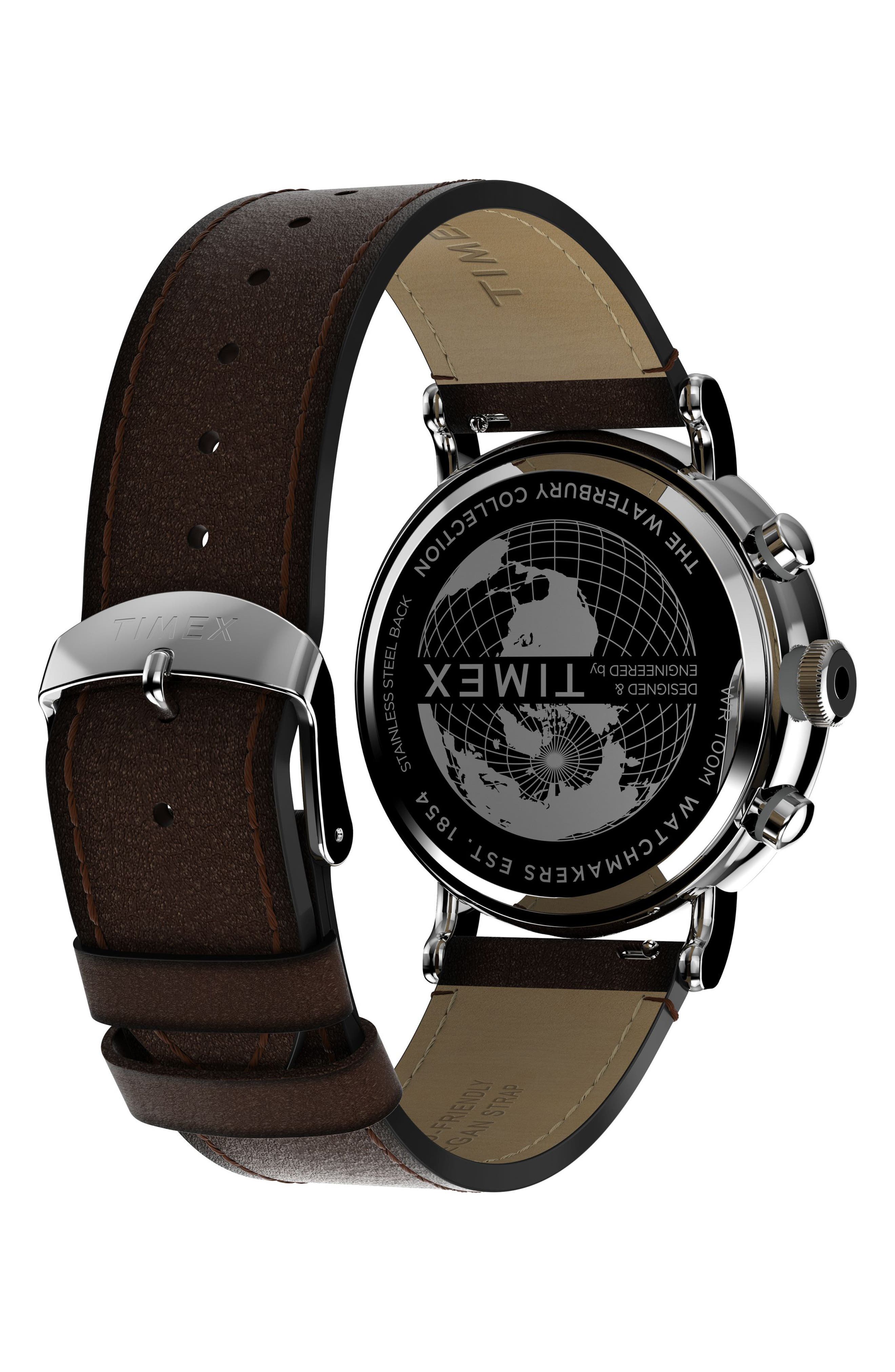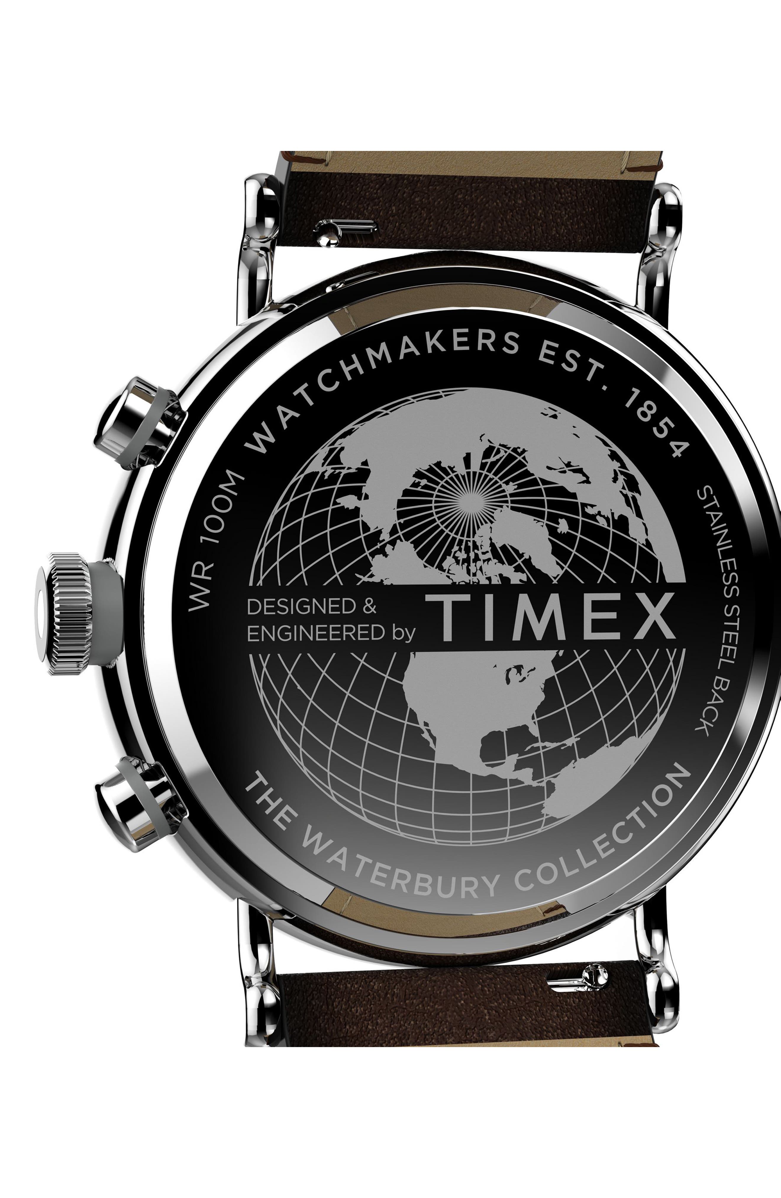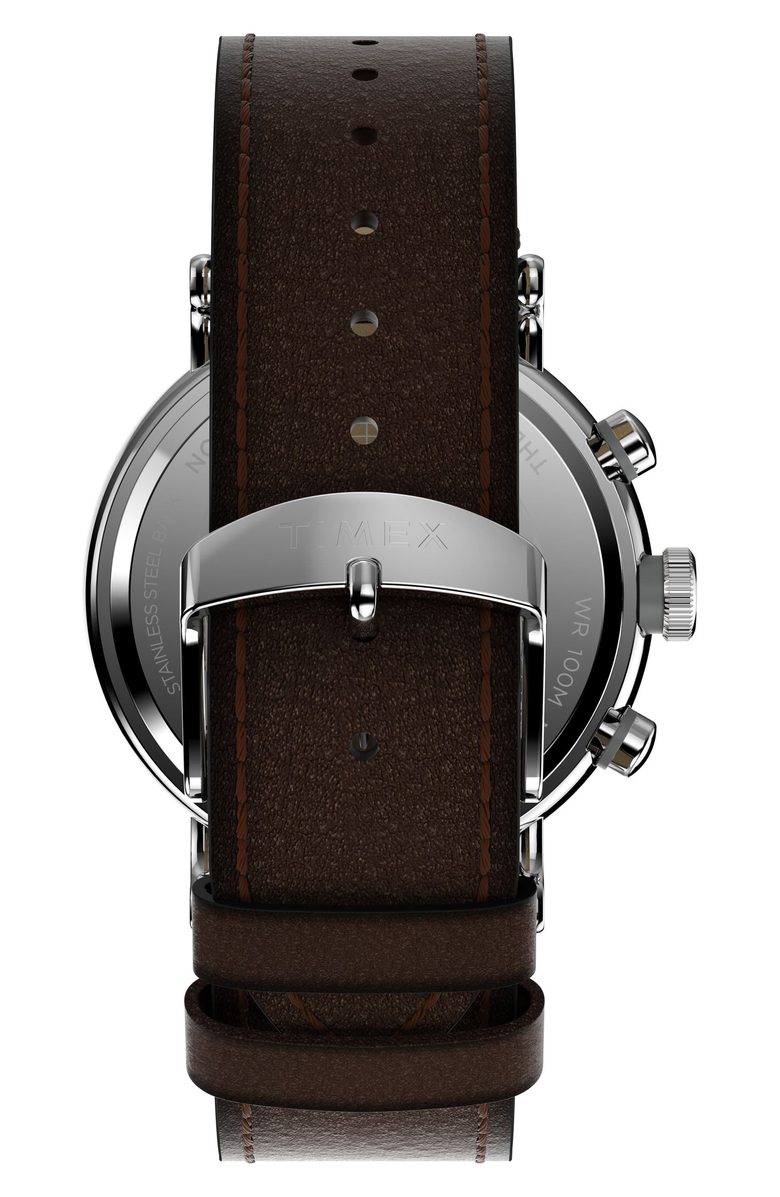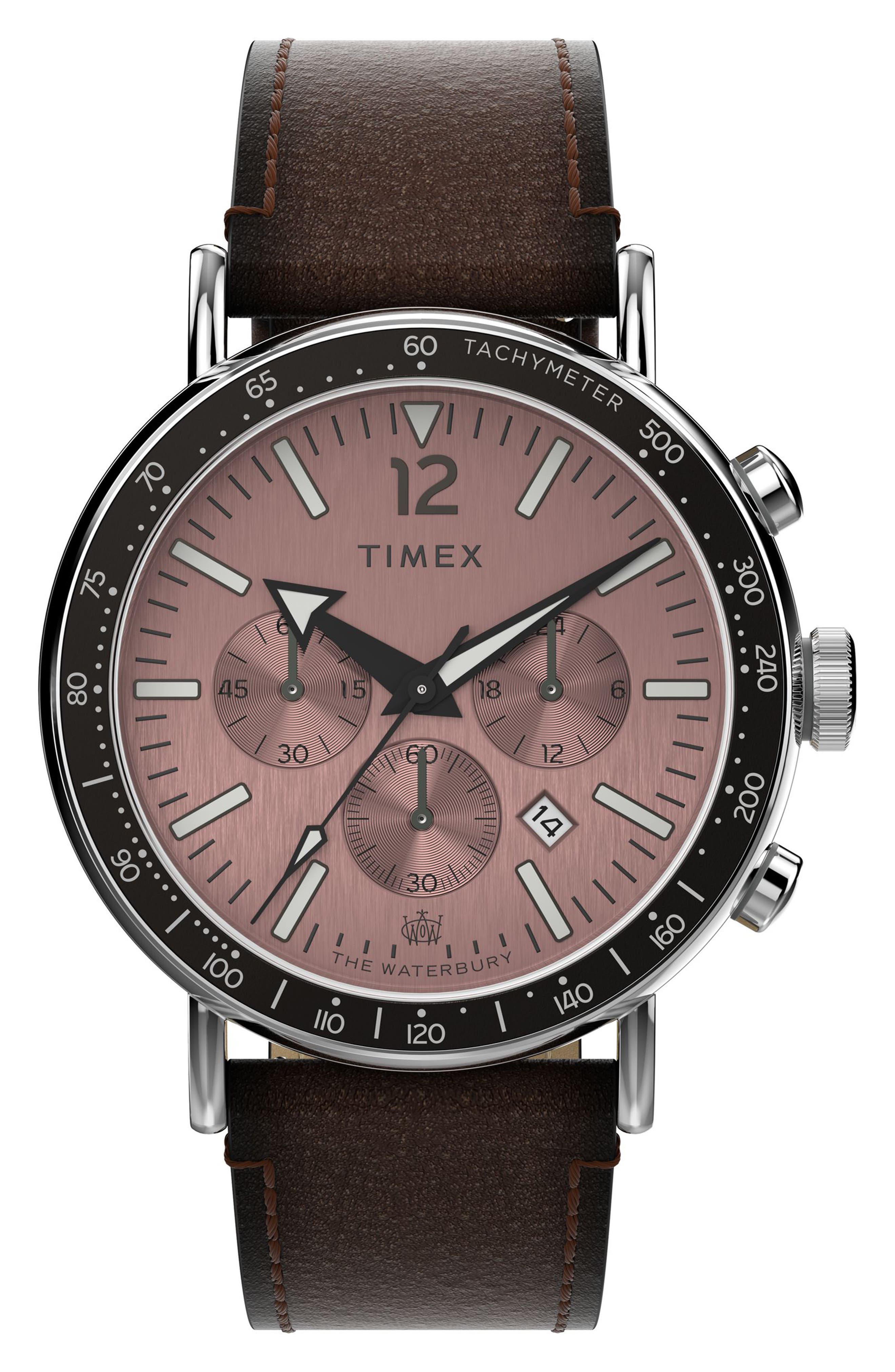 Timex Waterbury Standard Chronograph Leather Strap Watch 43mm_Brown