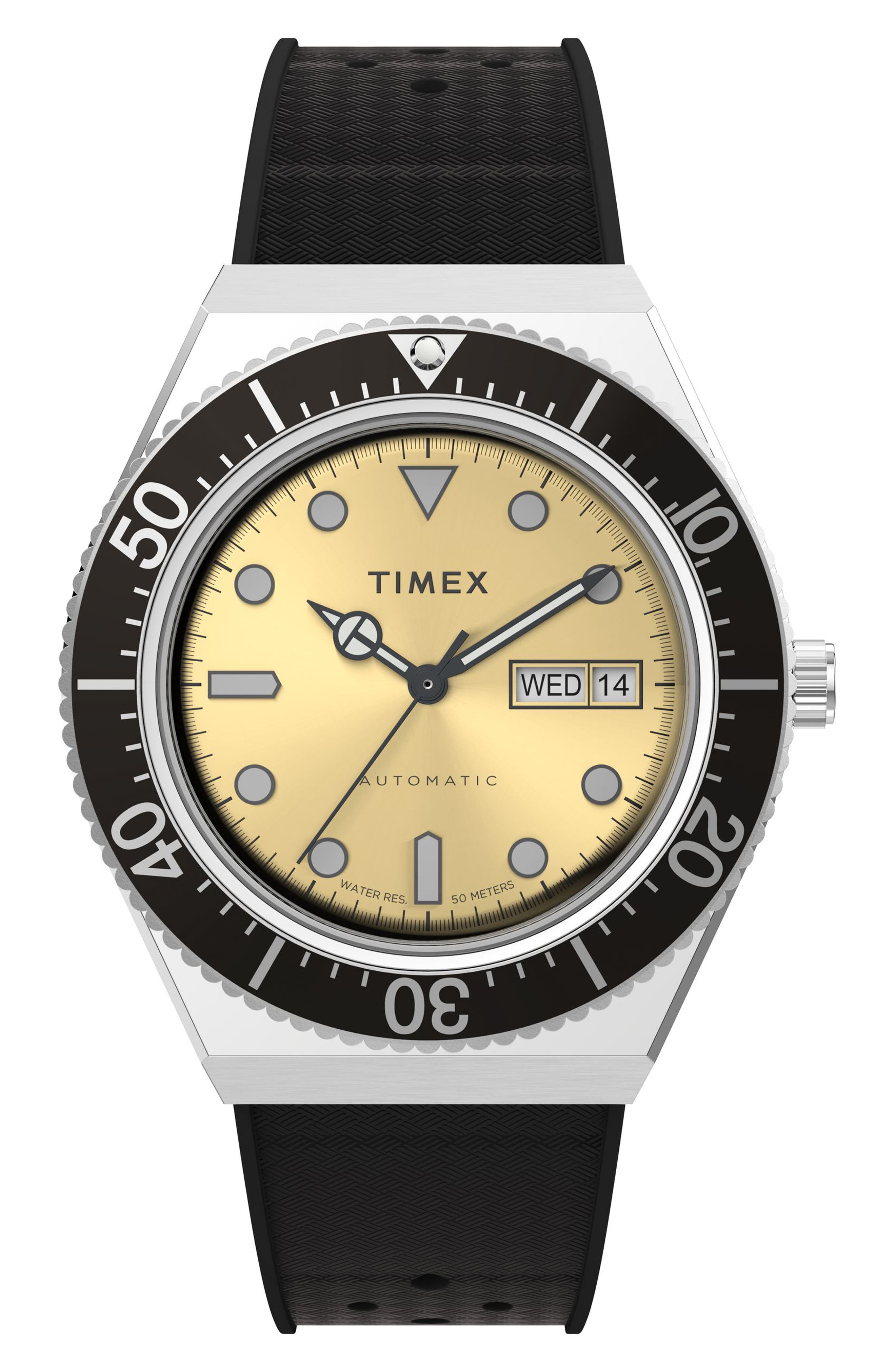 Timex M79 Automatic Rubber Strap Watch 40mm_Stainless Steel/Black