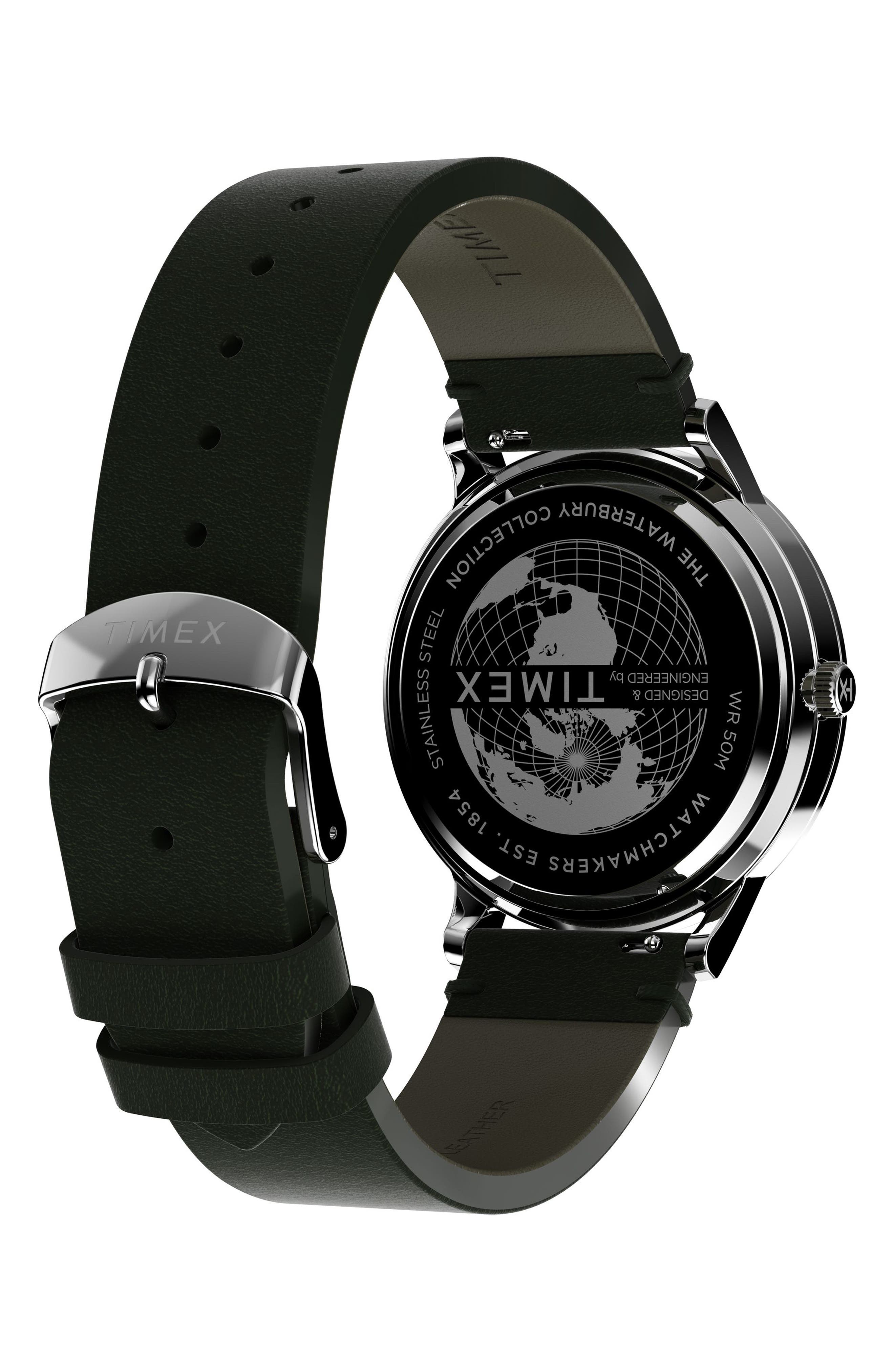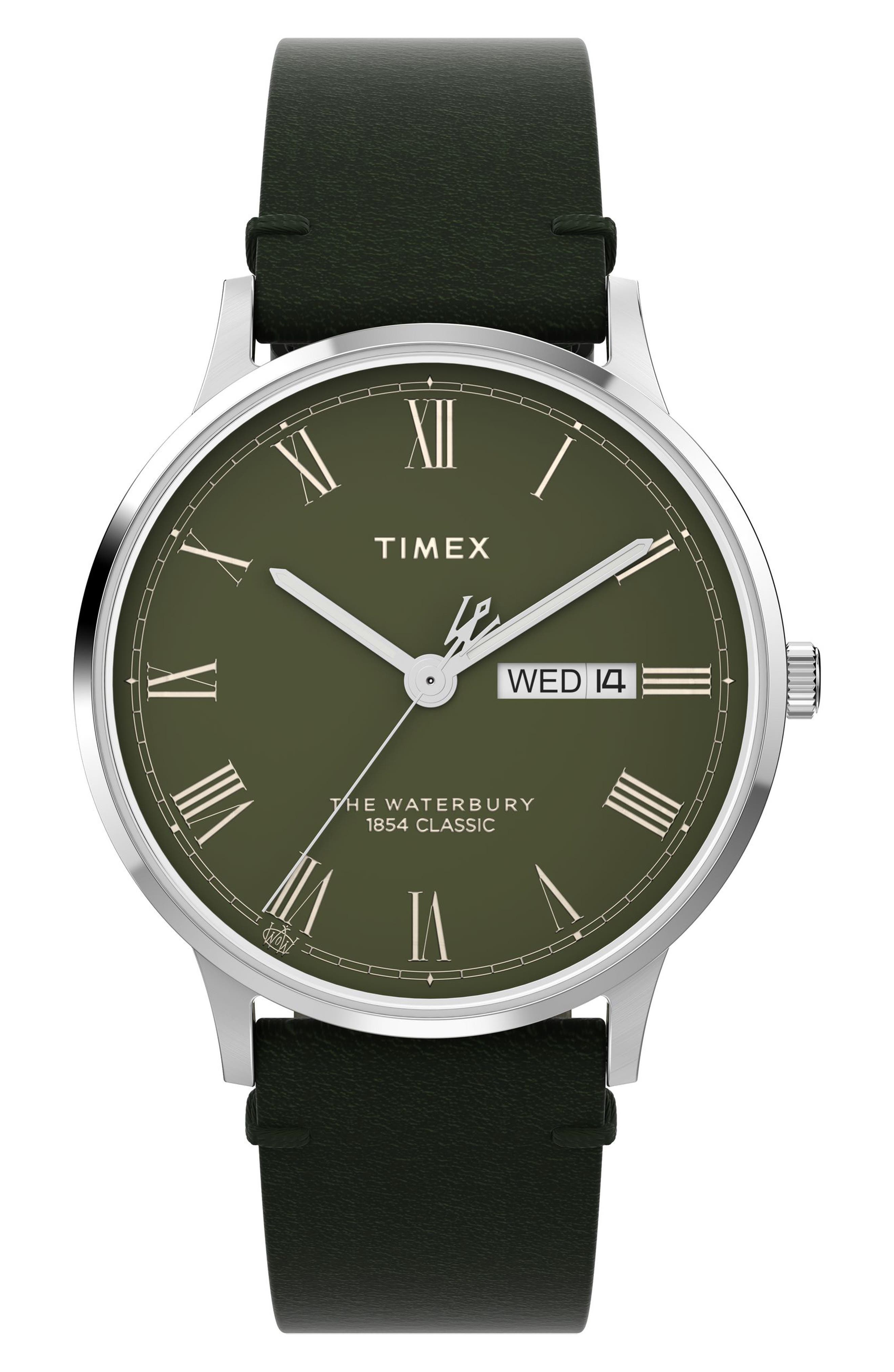 Timex Waterbury Leather Strap Watch 40mm_Green