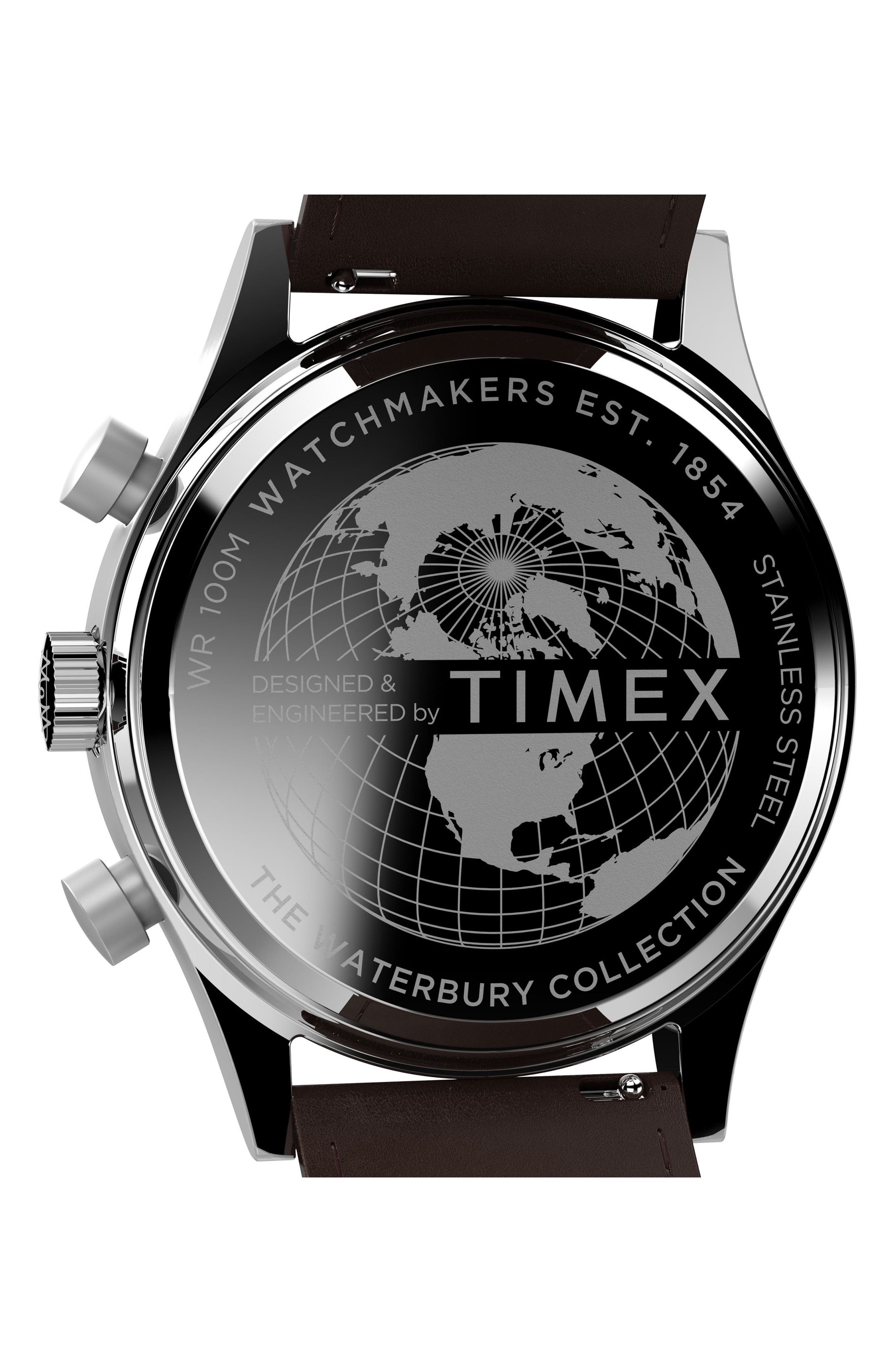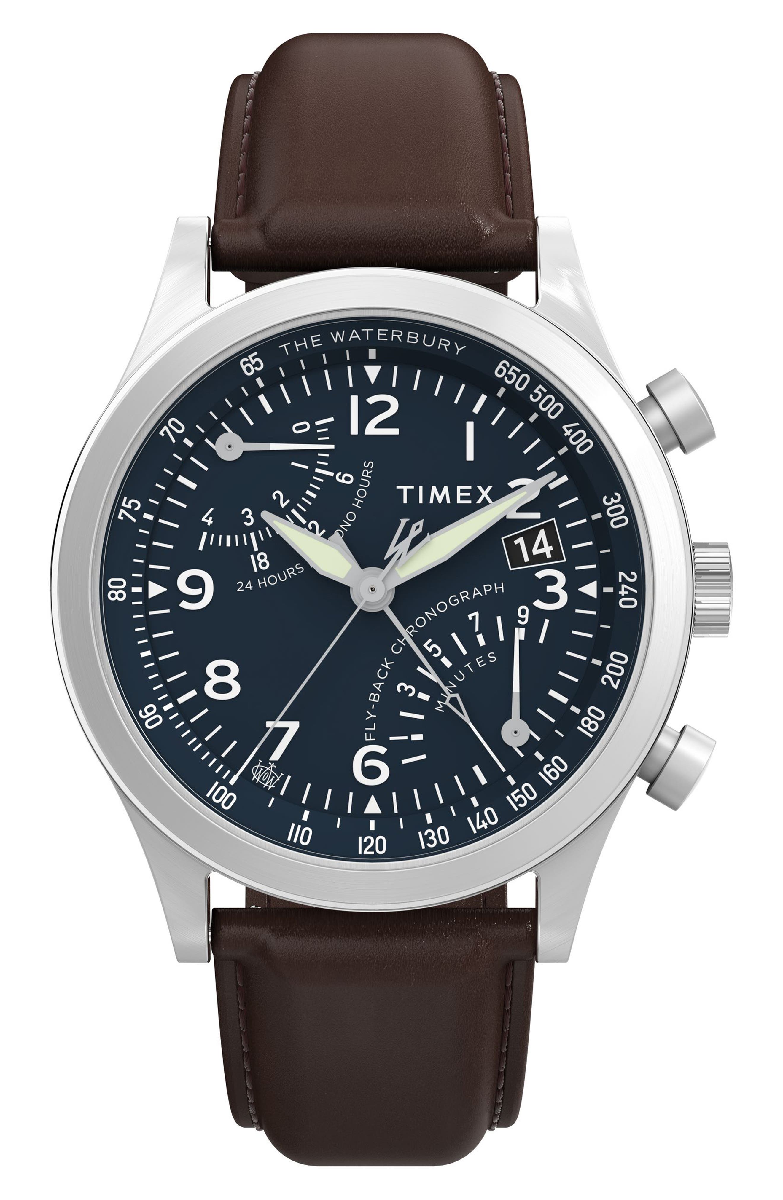Timex Waterbury Traditional Fly Back Chronograph Leather Strap Watch 43mm_Brown