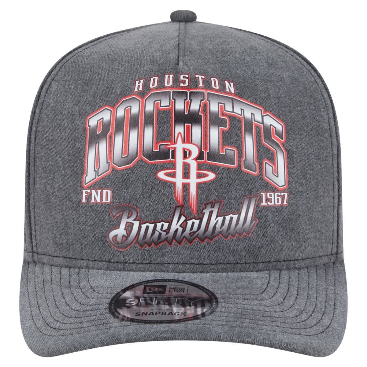 New Era Mens New Era Charcoal Houston Rockets Throwback Washed Pre-Curved 9FIFTY Snapback Hat_Charcoal