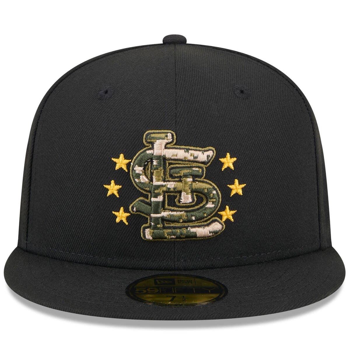 New Era Mens New Era Black St. Louis Cardinals 2024 Armed Forces Day On-Field 59FIFTY Fitted Hat_Black