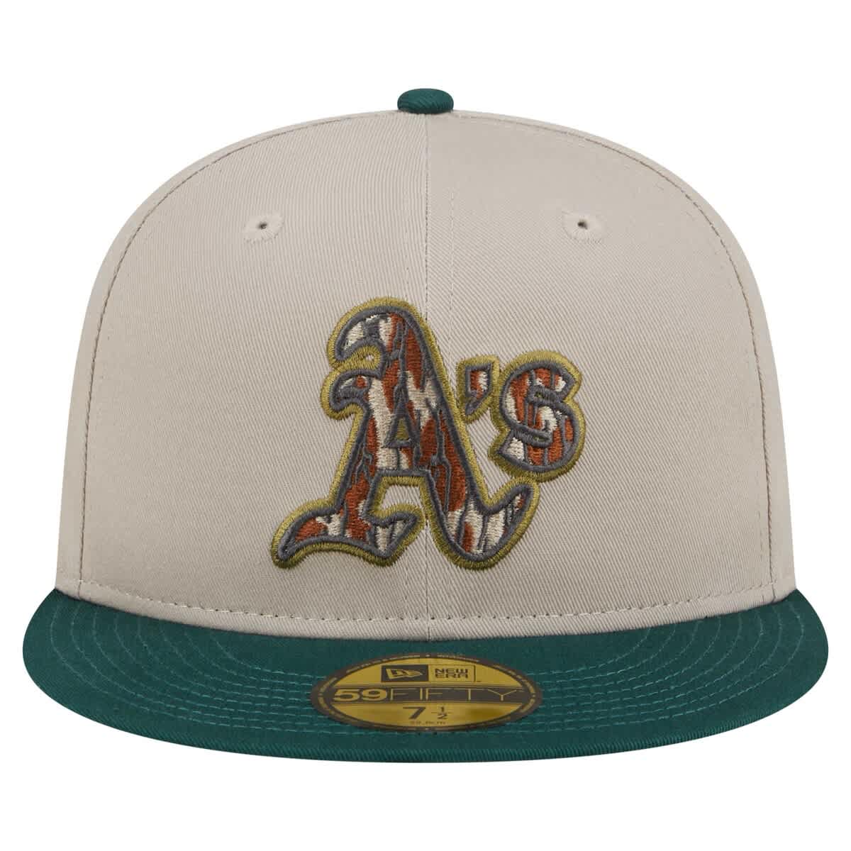 New Era Mens New Era Natural/Hunter Green Oakland Athletics Lifestyle Tree Bark Fill 59FIFTY Fitted Hat_Natural