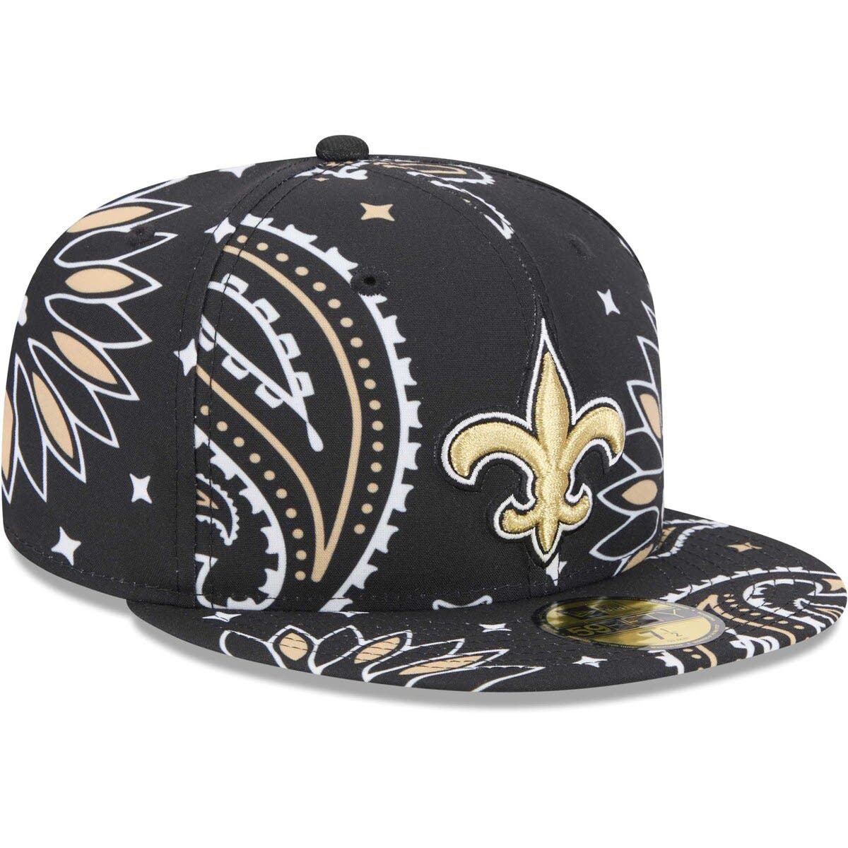 New Era Mens New Era Black New Orleans Saints Paisley 59FIFTY Fitted Hat_Black