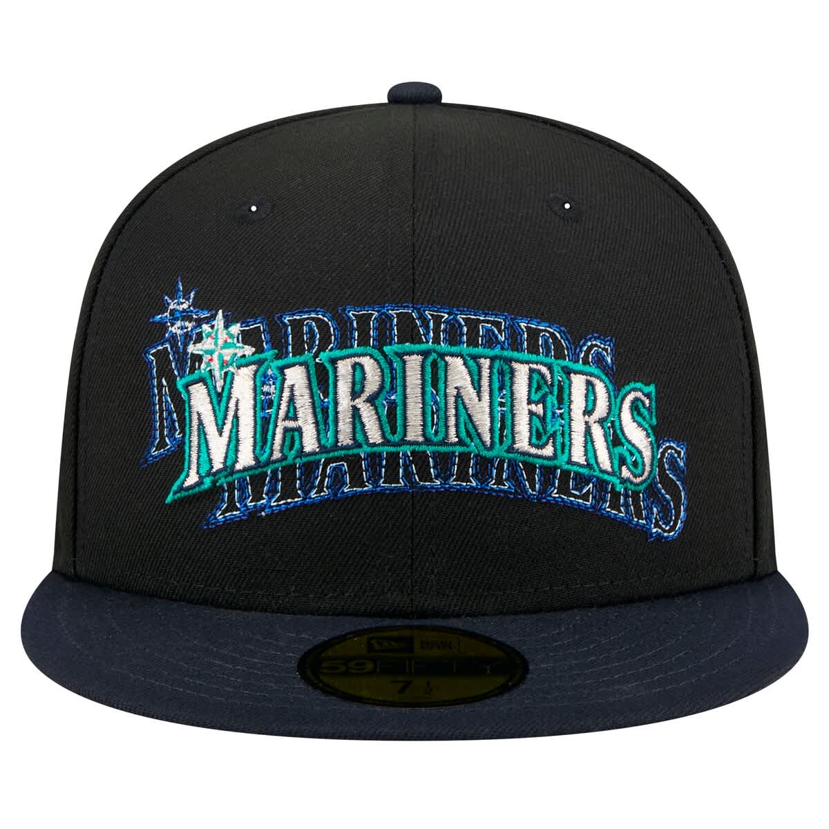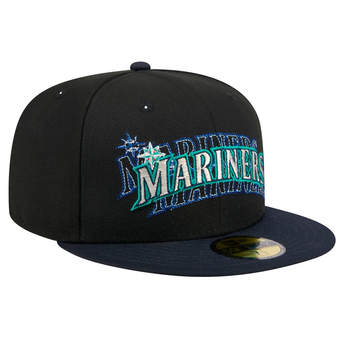 New Era Mens New Era Black Seattle Mariners Shadow Stitch 59FIFTY Fitted Hat_Black