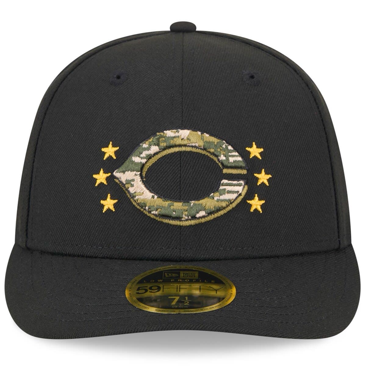 New Era Mens New Era Black Cincinnati Reds 2024 Armed Forces Day Low Profile 59FIFTY Fitted Hat_Black