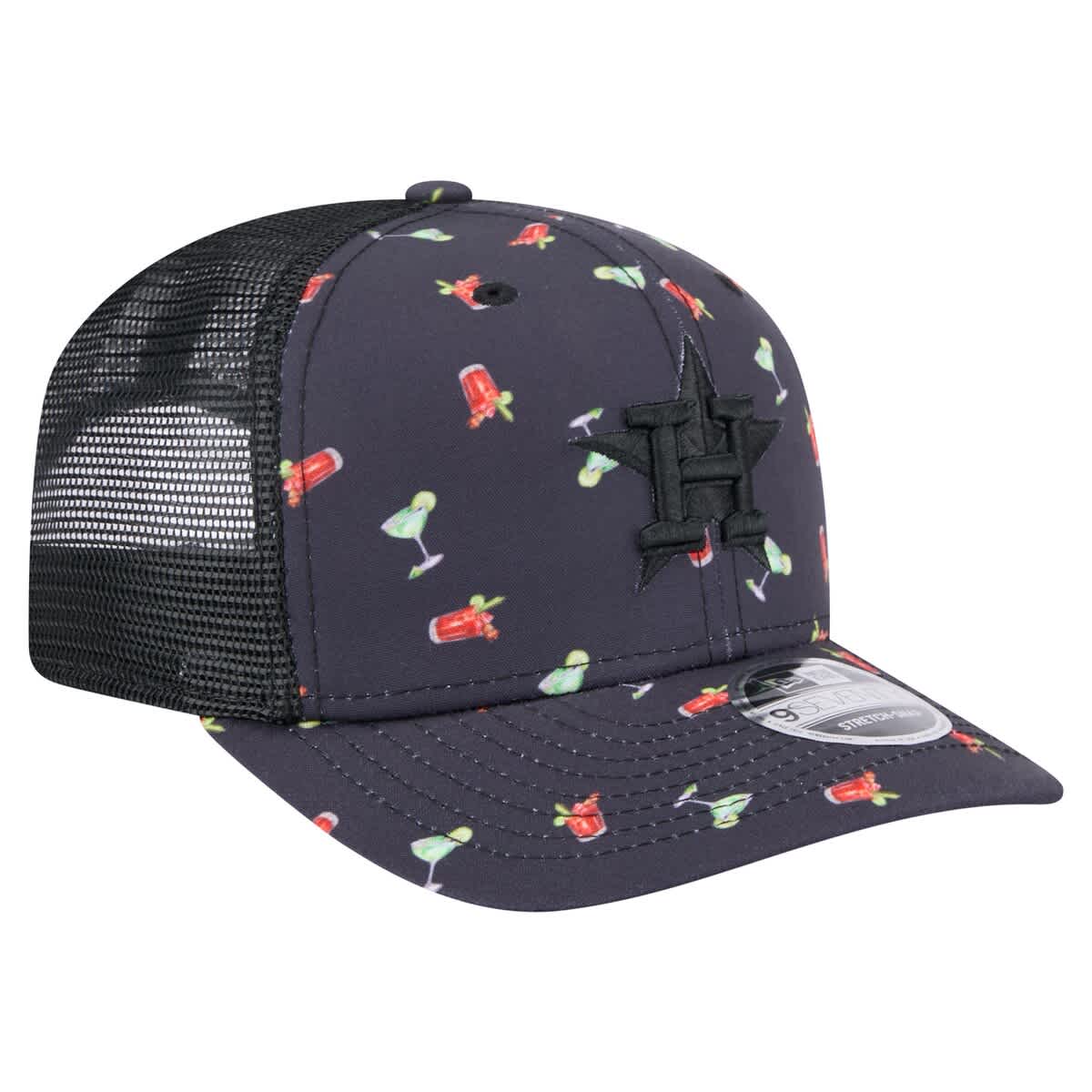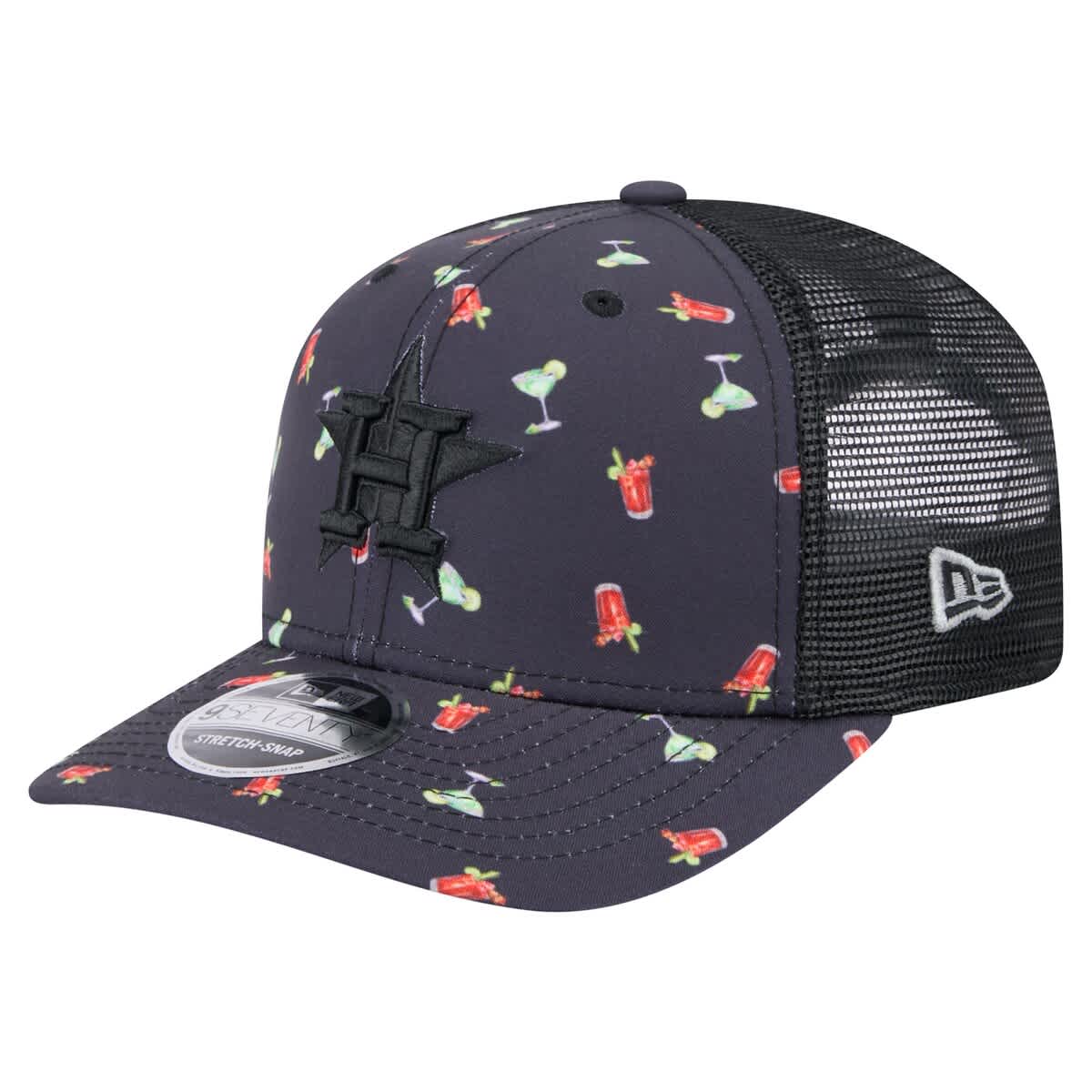 New Era Mens New Era Black Houston Astros Adventure Drinks Pattern 9SEVENTY Stretch-Snap Hat_Navy