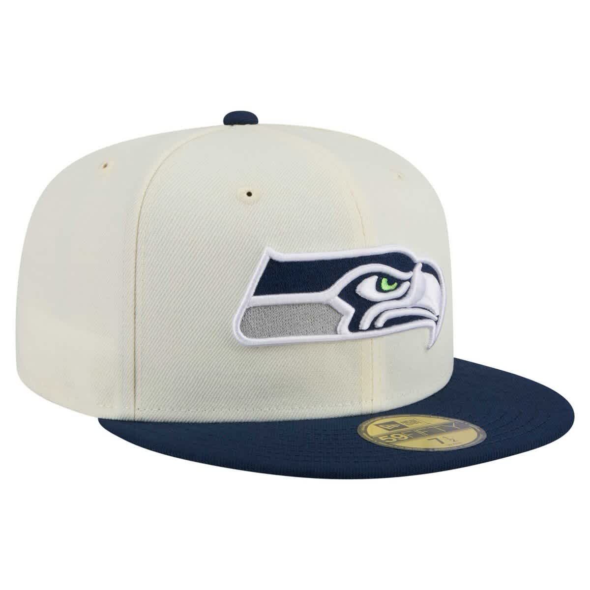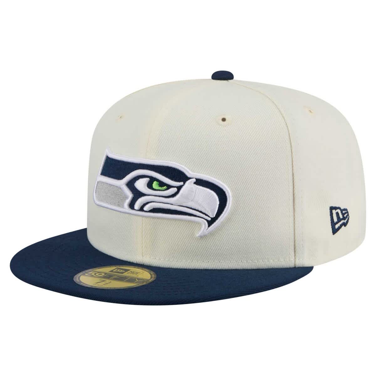 New Era Mens New Era White/College Navy Seattle Seahawks Main 59FIFTY Fitted Hat_White