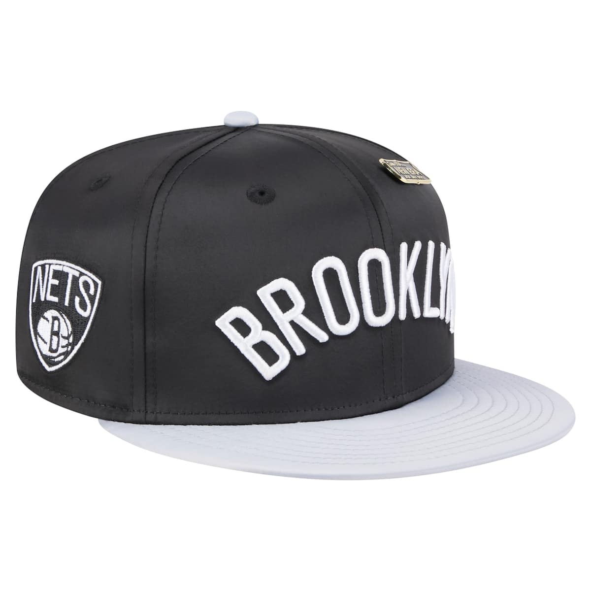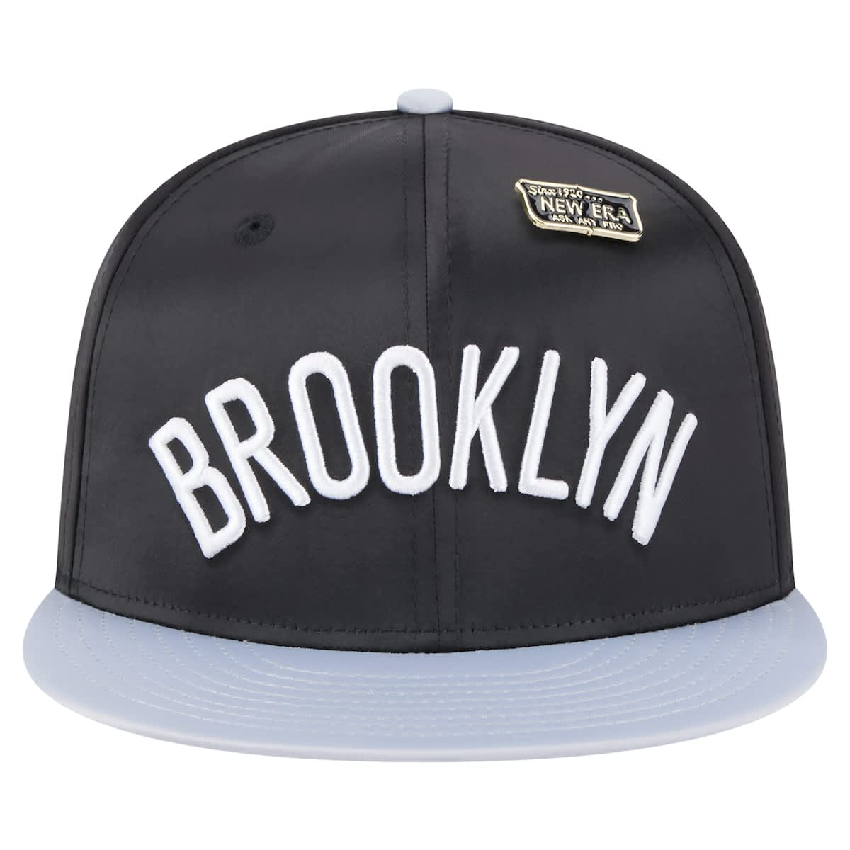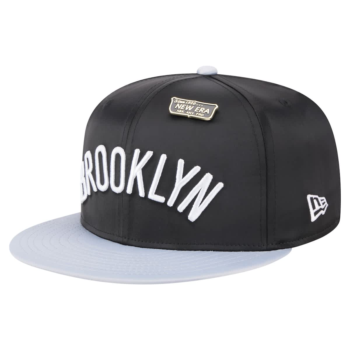 New Era Mens?New Era Black/Gray Brooklyn Nets Throwback Satin Vintage Pin Two-Tone 59FIFTY Fitted Hat_Black