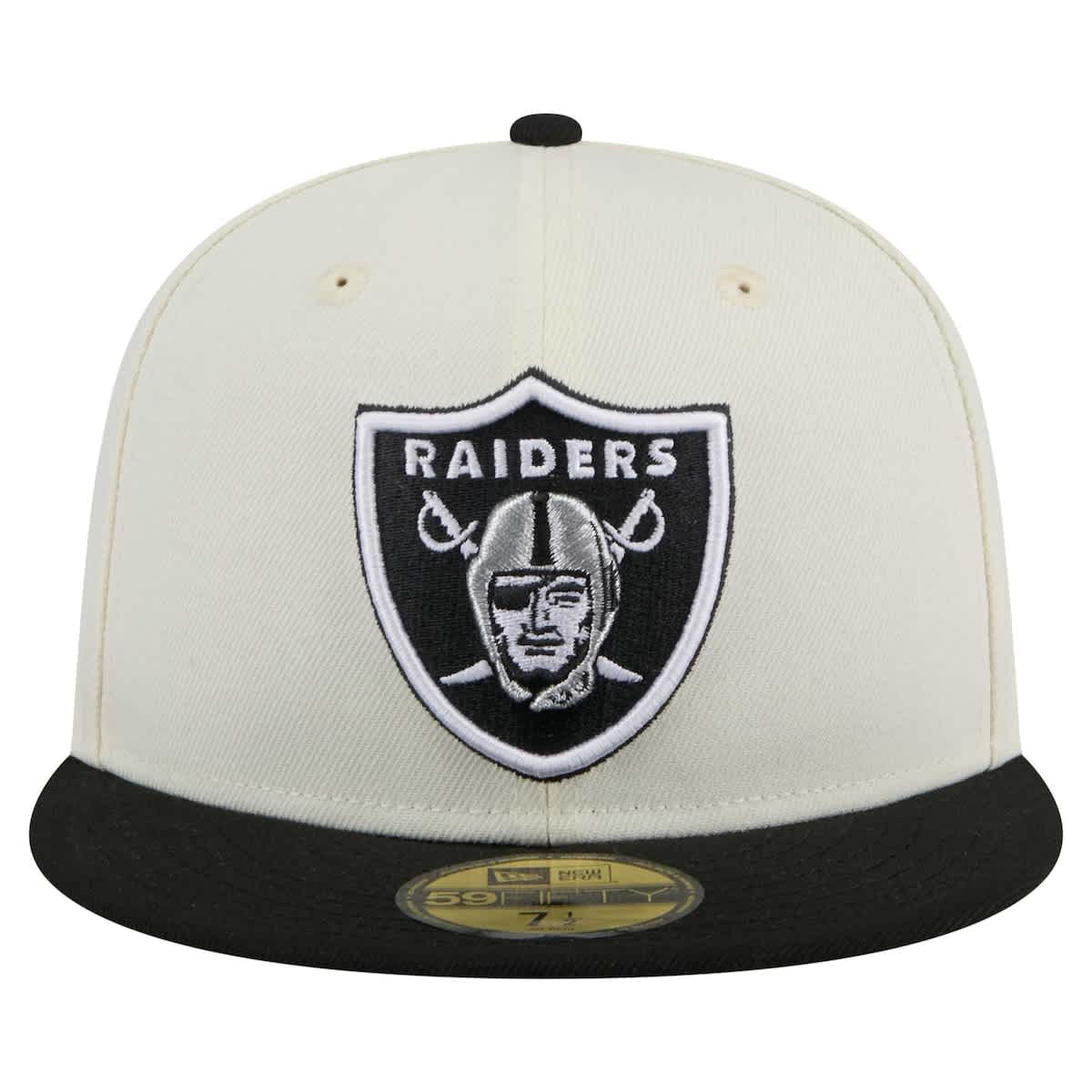 New Era Mens New Era White/Black Las Vegas Raiders Main 59FIFTY Fitted Hat_White