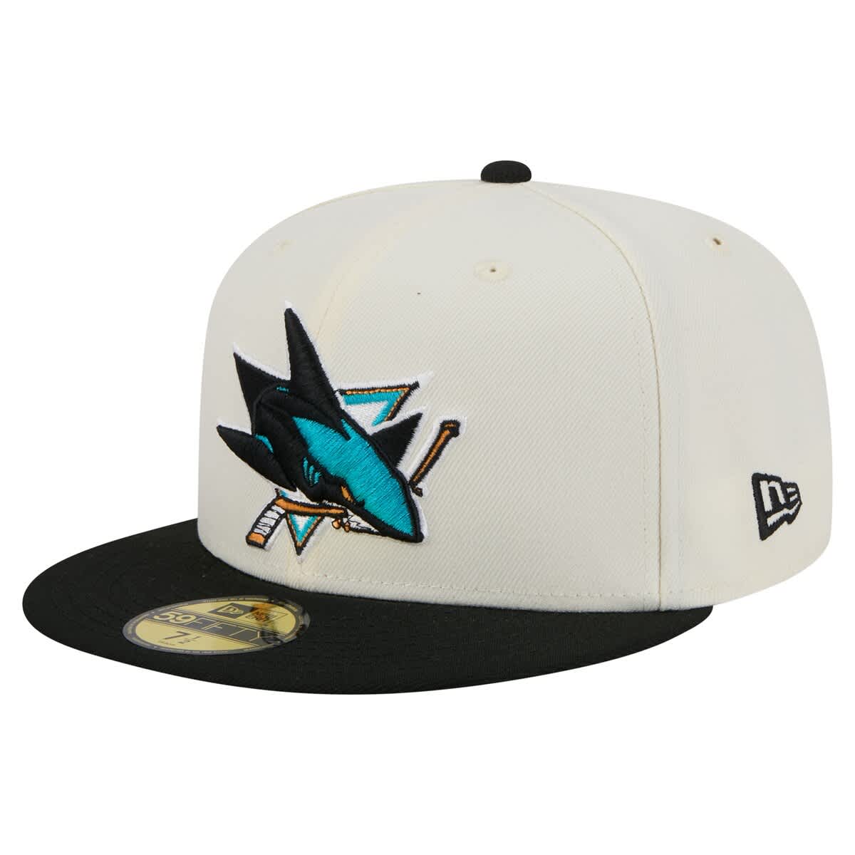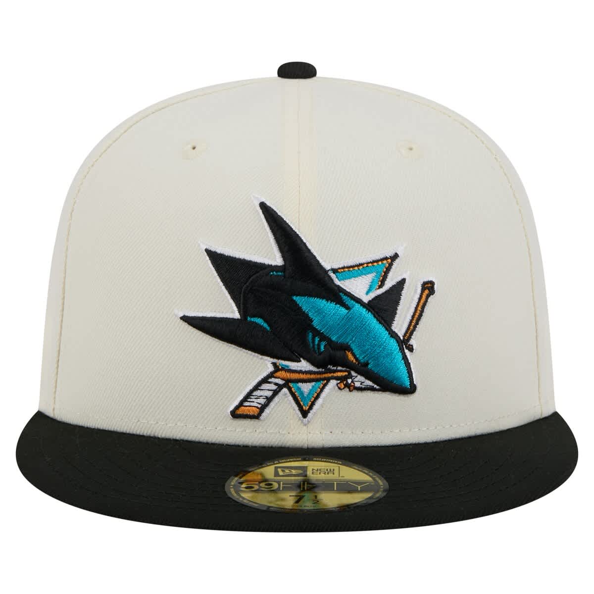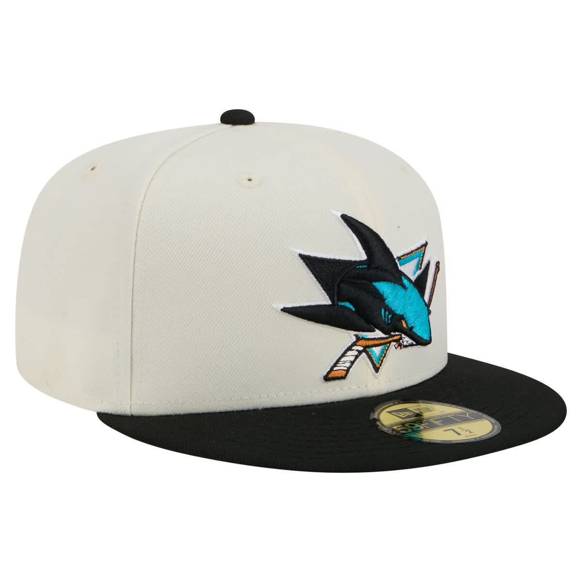 New Era Mens?New Era White San Jose Sharks Chrome Two-Toned 59FIFTY Fitted Hat_Cream