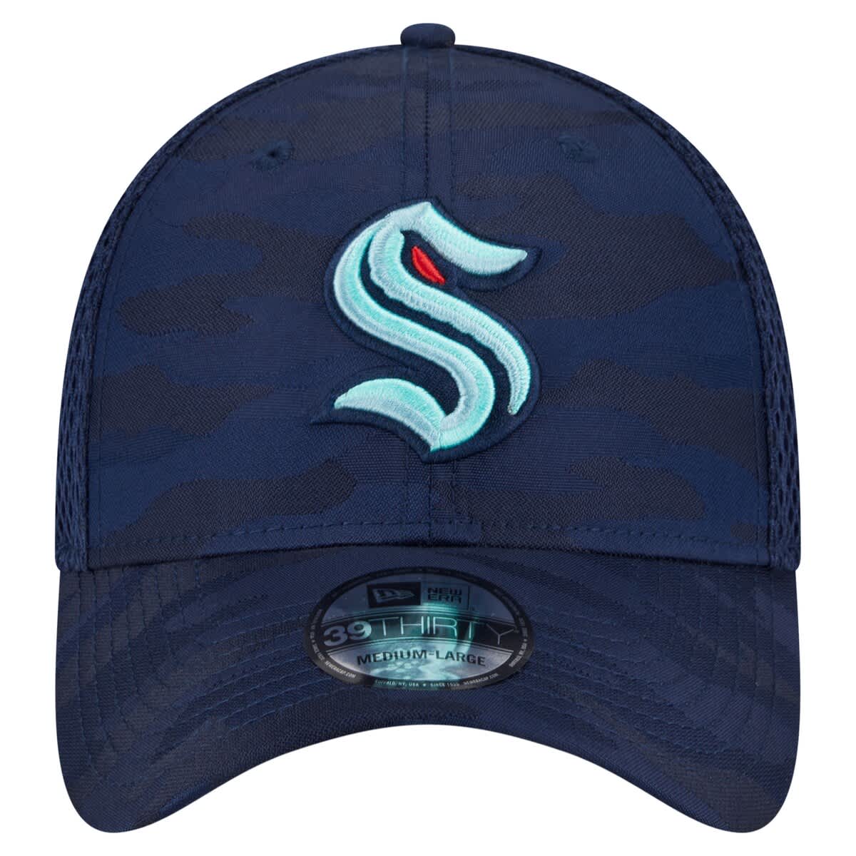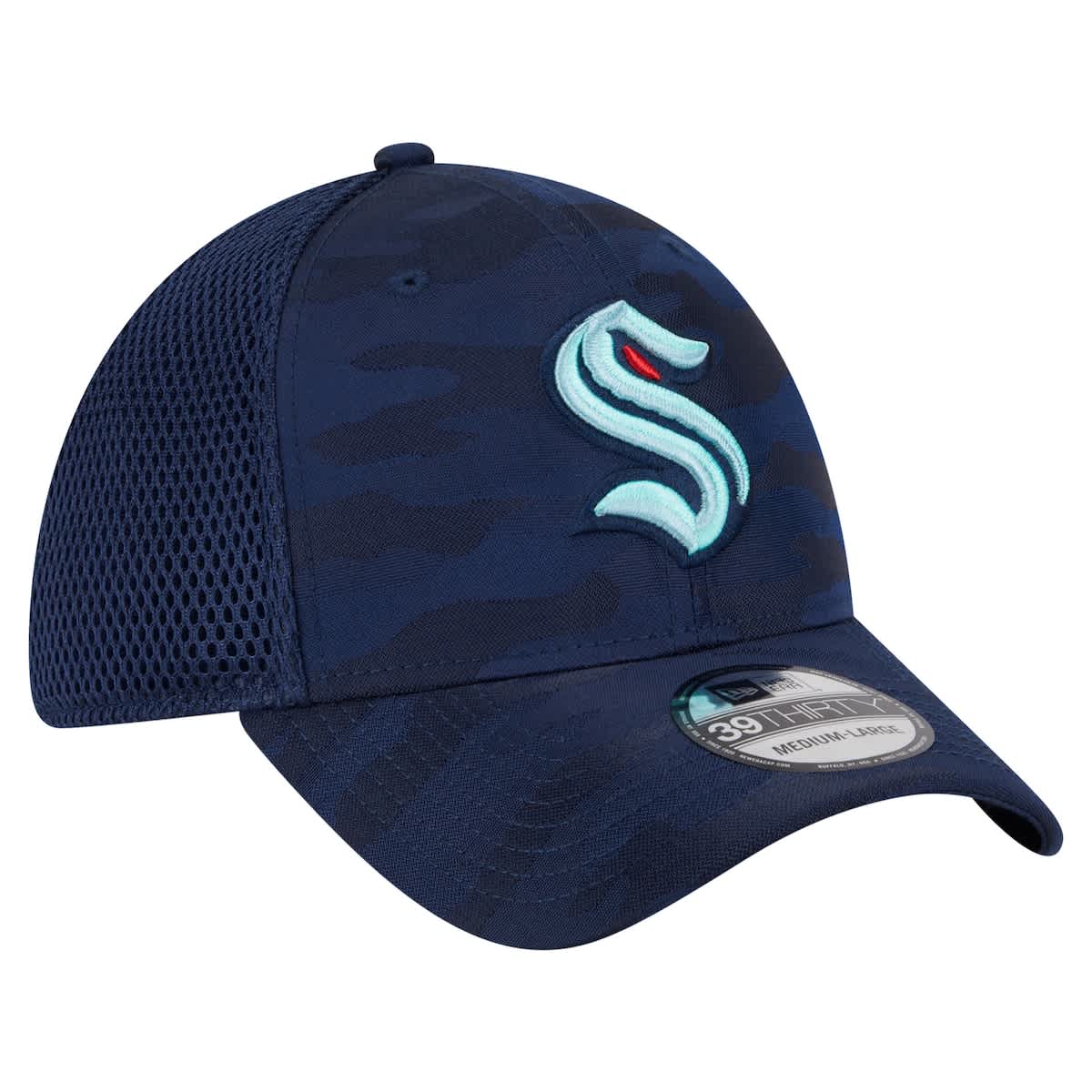 New Era Mens New Era Deep Sea Blue Seattle Kraken Active Subtle Camo 39THIRTY Flex Hat_Navy