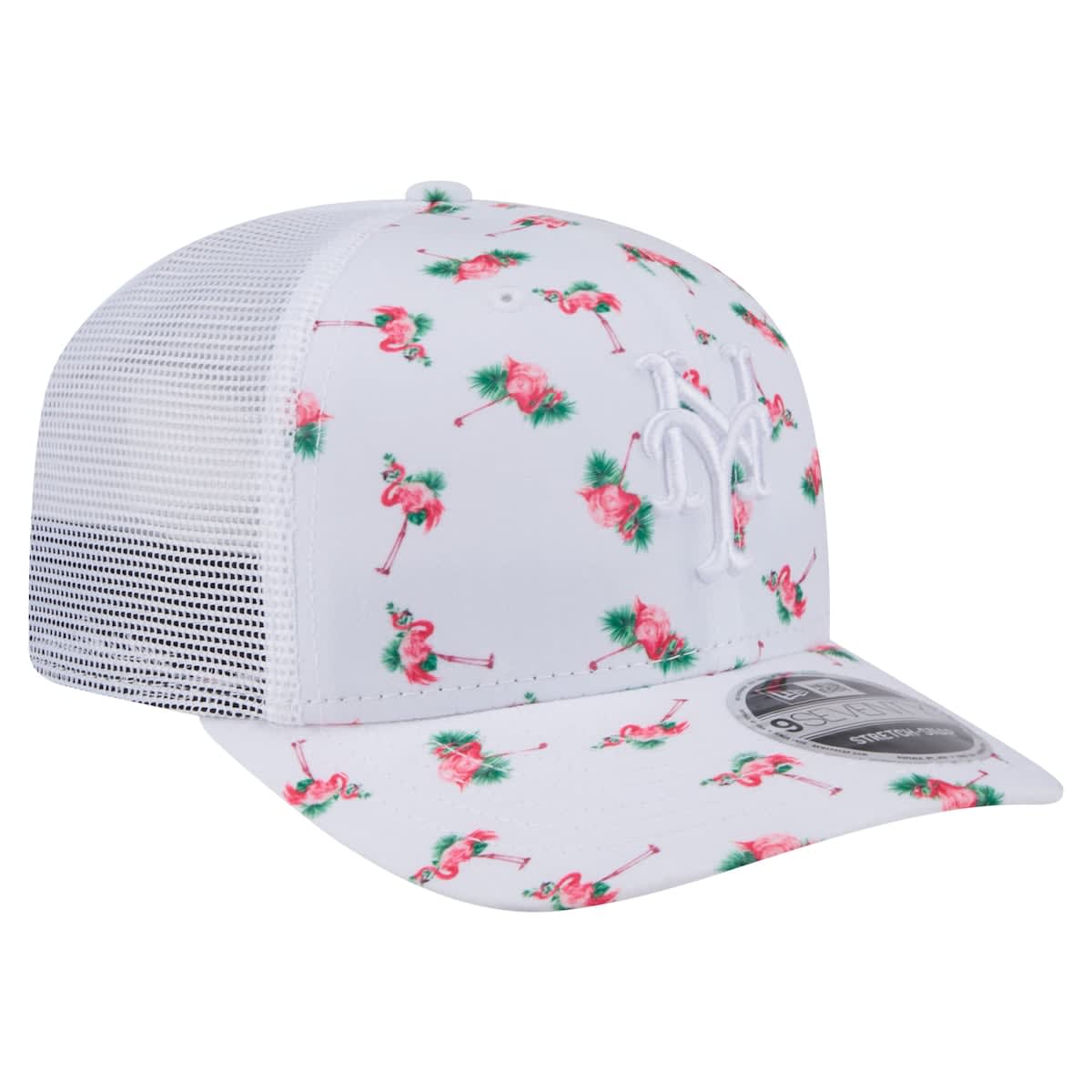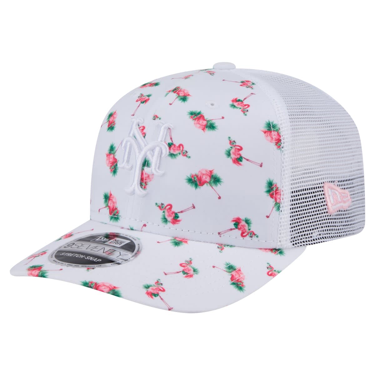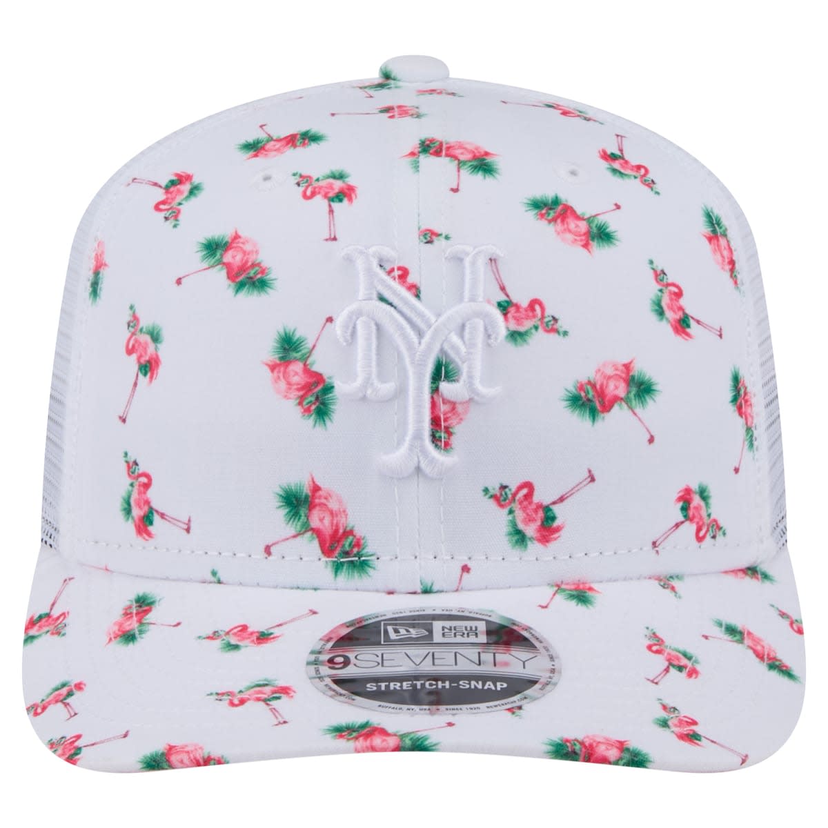 New Era Mens?New Era White New York Mets Flamingo Mesh Back 9SEVENTY Stretch-Snap Hat_White