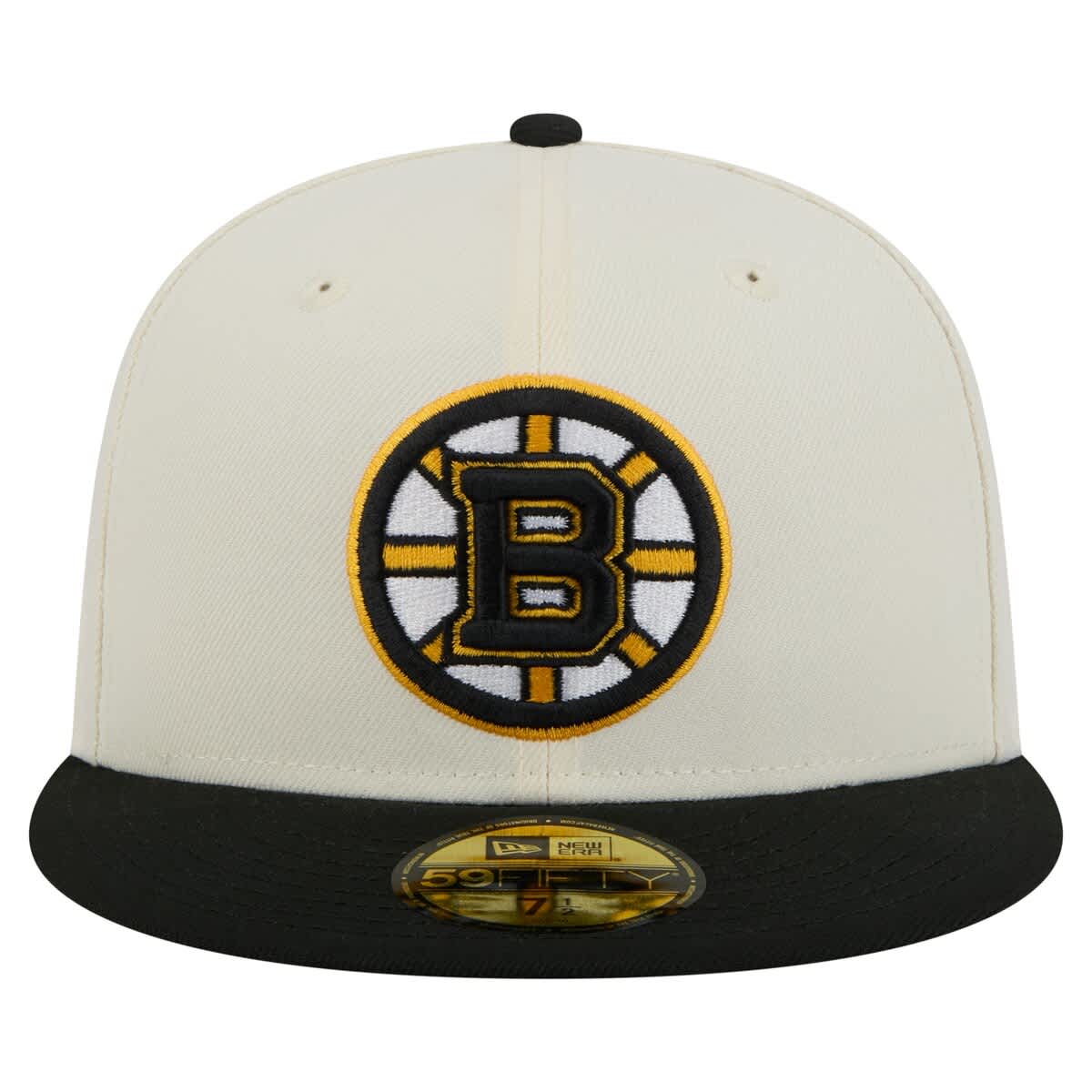 New Era Mens?New Era White Boston Bruins Chrome Two-Toned 59FIFTY Fitted Hat_Cream