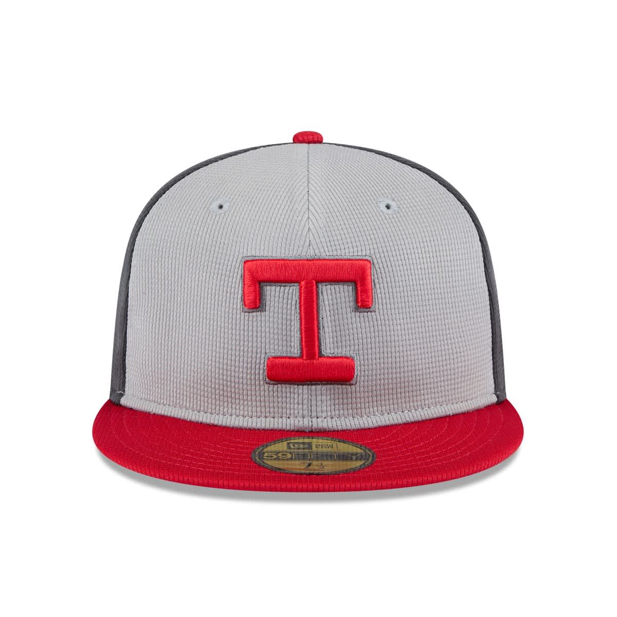 New Era Mens New Era Gray/Red Texas Rangers 2025 Batting Practice 59FIFTY Fitted Hat_Gray