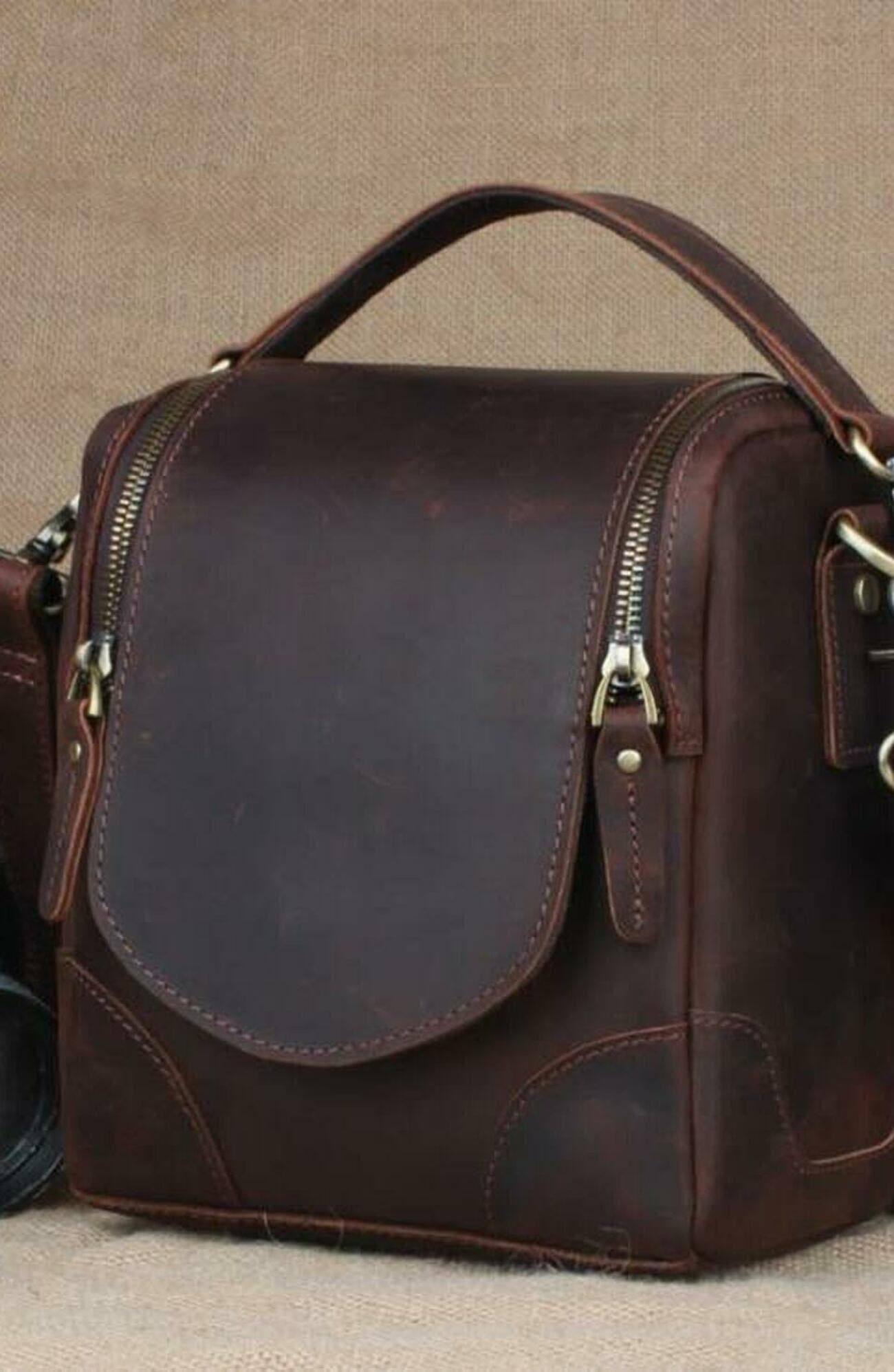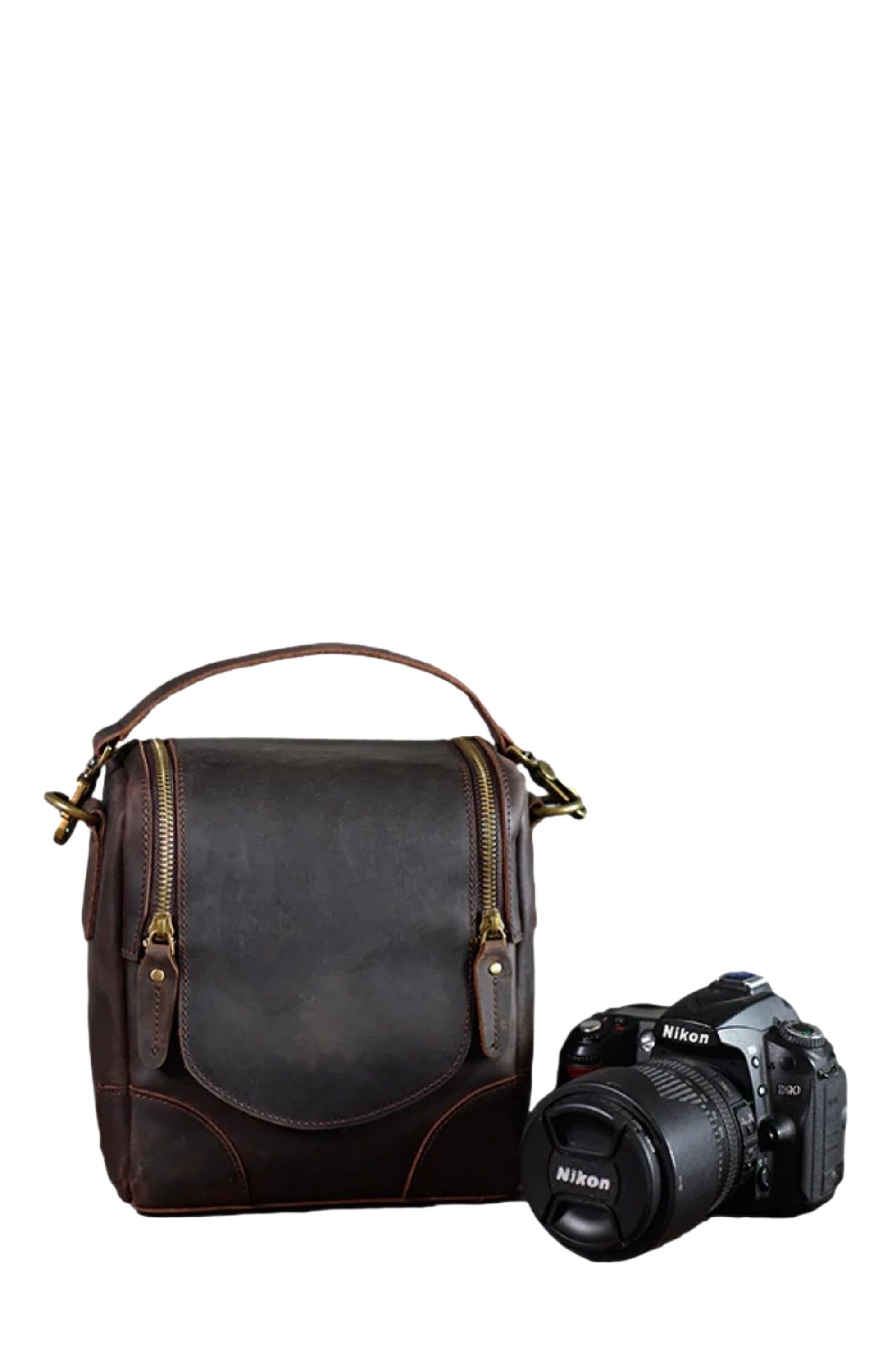 STEEL HORSE LEATHER The Calista Small Leather Camera Bag - Leather Camera Lens Case_Dark Brown